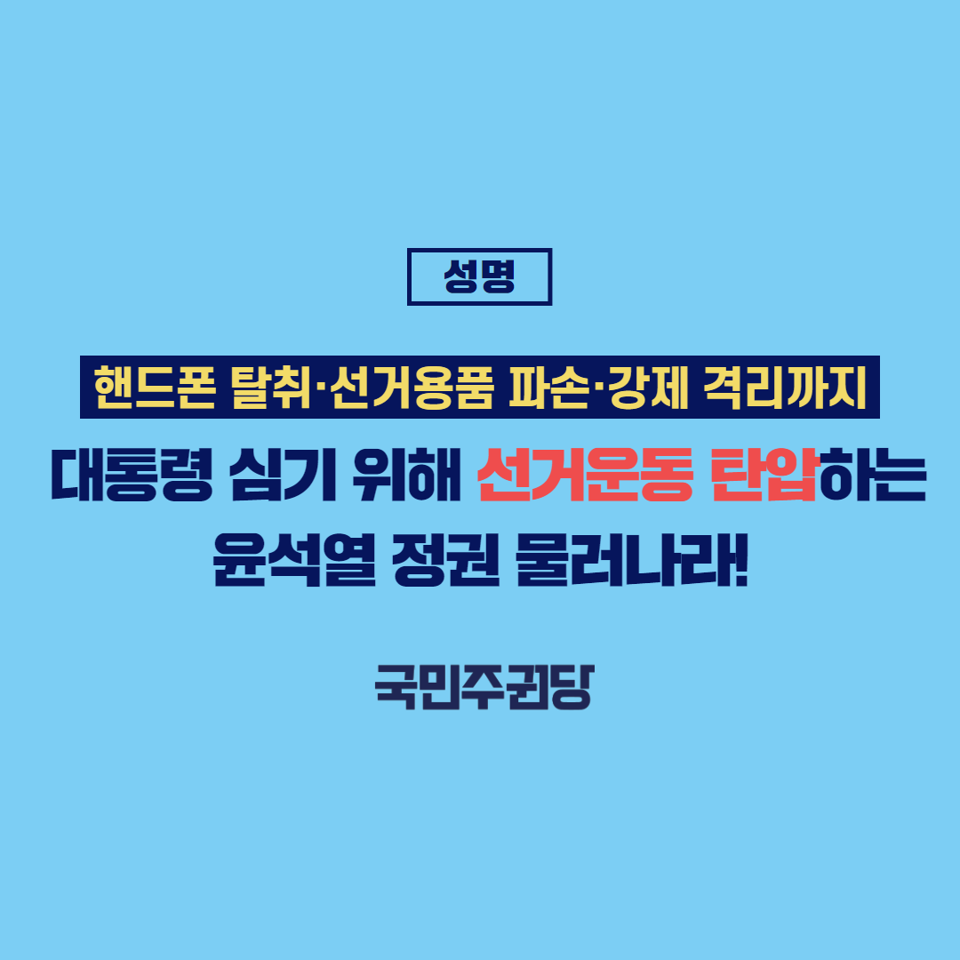 글 제목 : [성명]핸드폰 탈취·선거용품 파손·강제 격리까지.. 대통령 심기 위해 선거운동 탄압하는 윤석열 정권 물러나라!