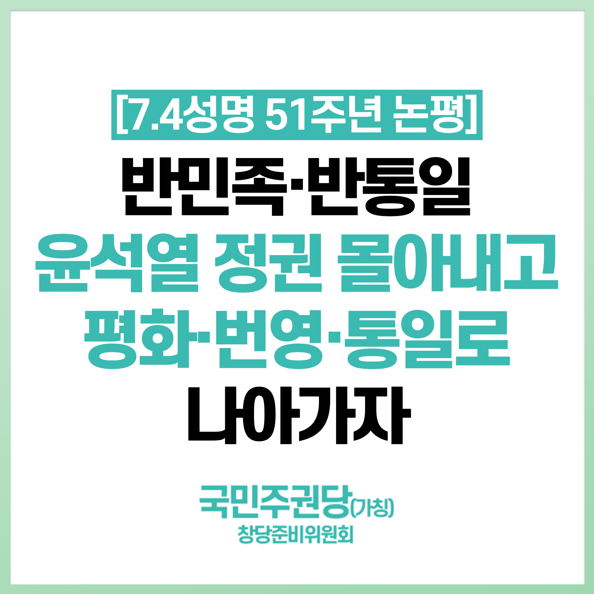 글 제목 : [7.4성명 51주년 논평] 반민족·반통일 윤석열 정권 몰아내고 평화·번영·통일로 나아가자