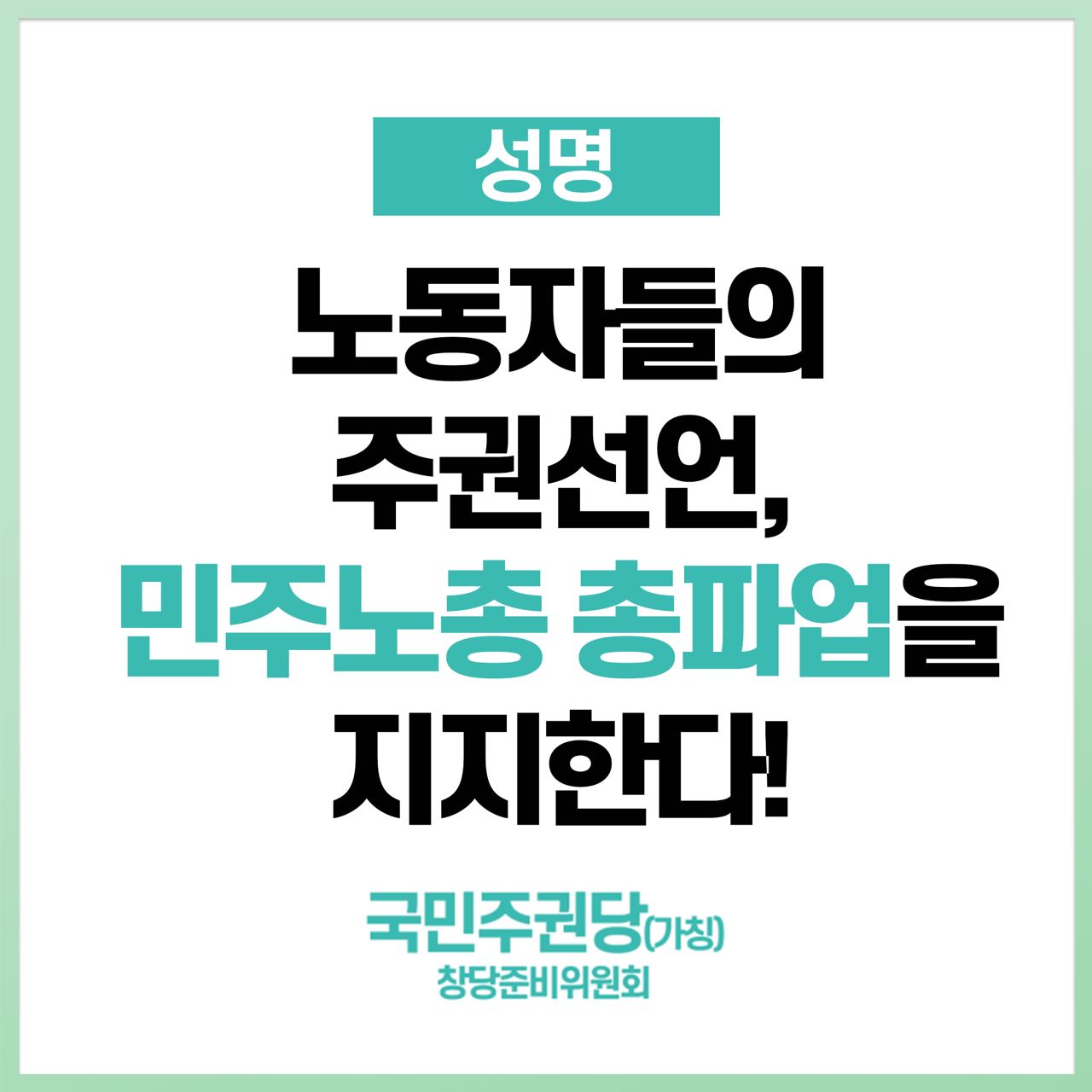 국민주권당(준)은 민주노총의 총파업 투쟁을 환영하며 적극 지지한다.