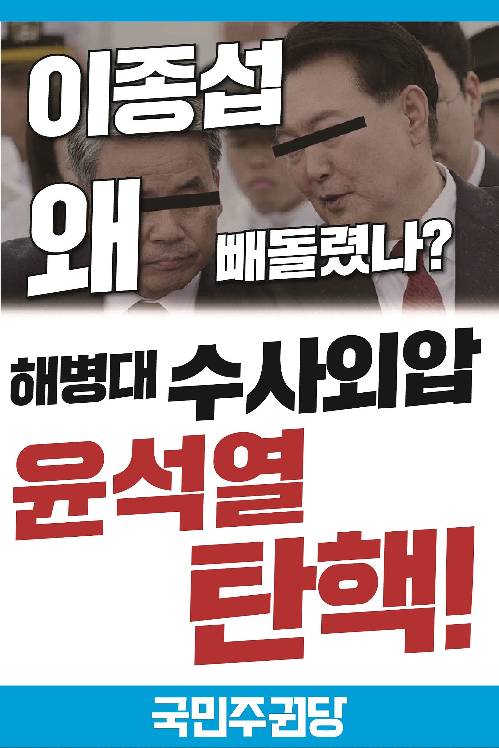 자료실/홍보자료실 2024. 3. 19. [일인 시위 피켓] 채상병 수사외압 윤석열 탄핵 글자 작게 글자 크게 인쇄 공유 닫기 이 글을 공유합니다. 카카오스토리 페이스북 네이버블로그 트위터 링크복사 글 작성 : 2024년 03월 19일 글 제목 : [일인 시위 피켓] 채상병 수사외압 윤석열 탄핵 이종섭 왜 빼돌렸나.pdf 8.81MB 공유하기 게시글 관리 국민주권당 저작자표시 (새창열림)