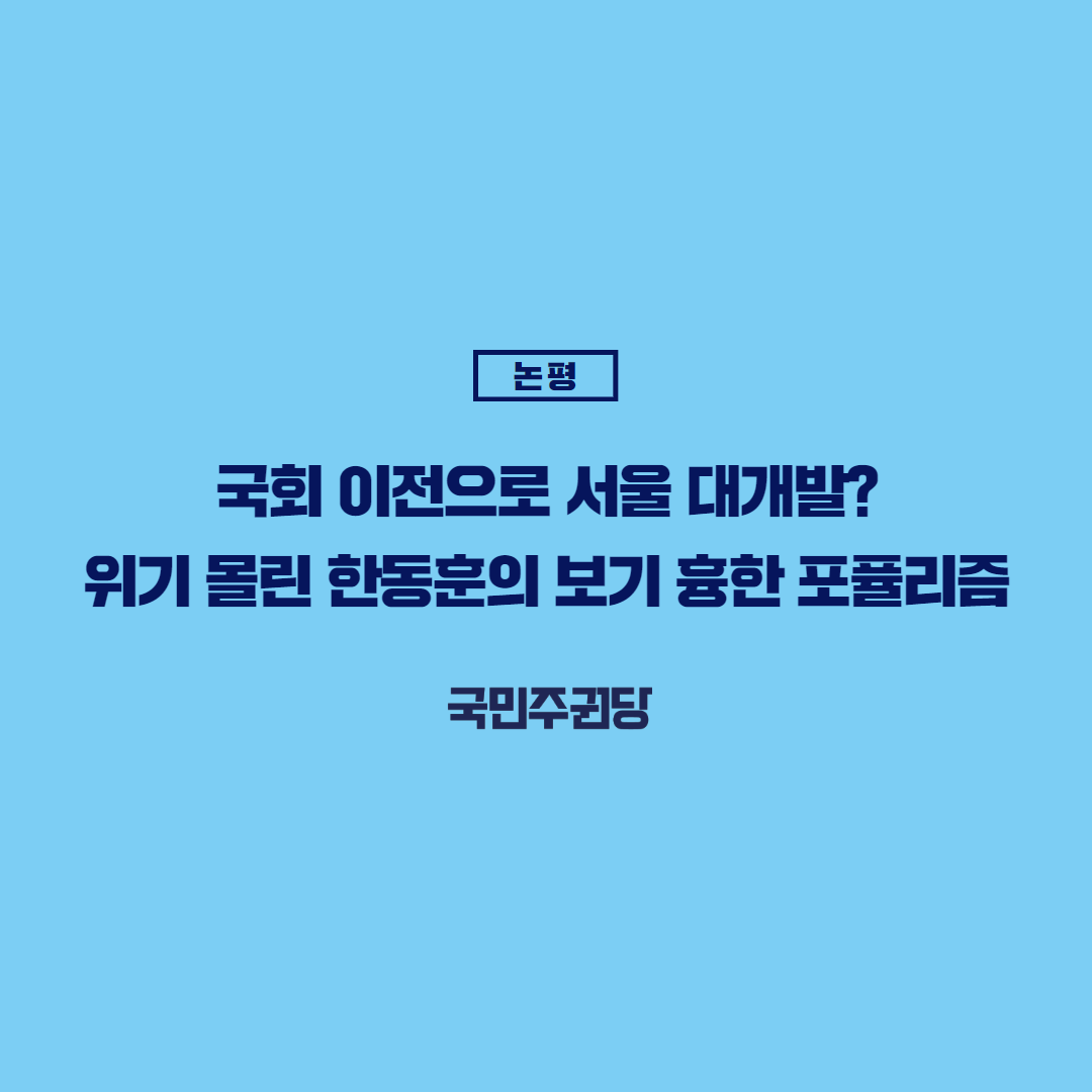 글 제목 : [논평] 국회 이전으로 서울 대개발? 위기 몰린 한동훈의 보기 흉한 포퓰리즘