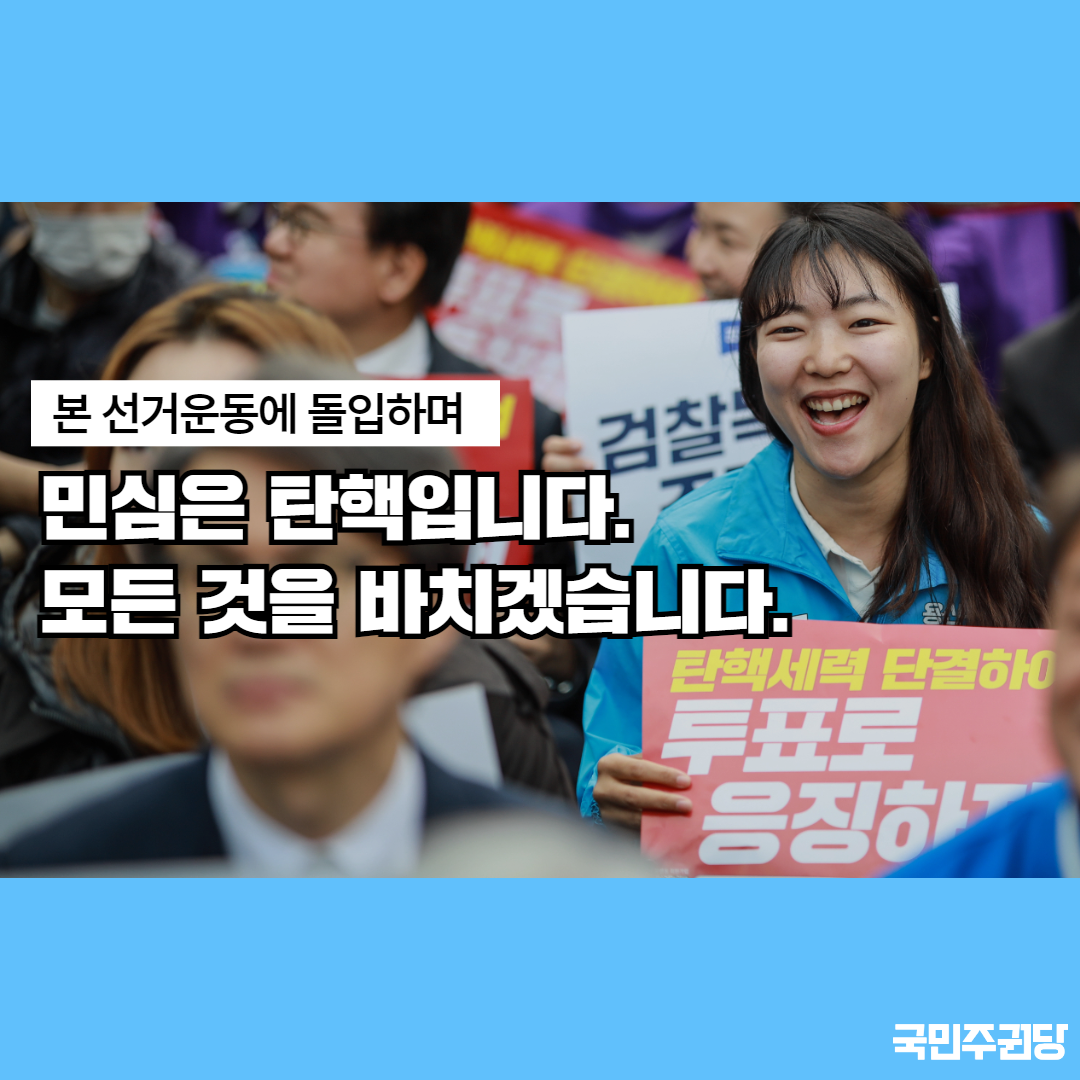 글 제목 : [구산하 선본] 민심은 탄핵입니다. 모든 것을 바치겠습니다. -본 선거운동에 돌입하며-
