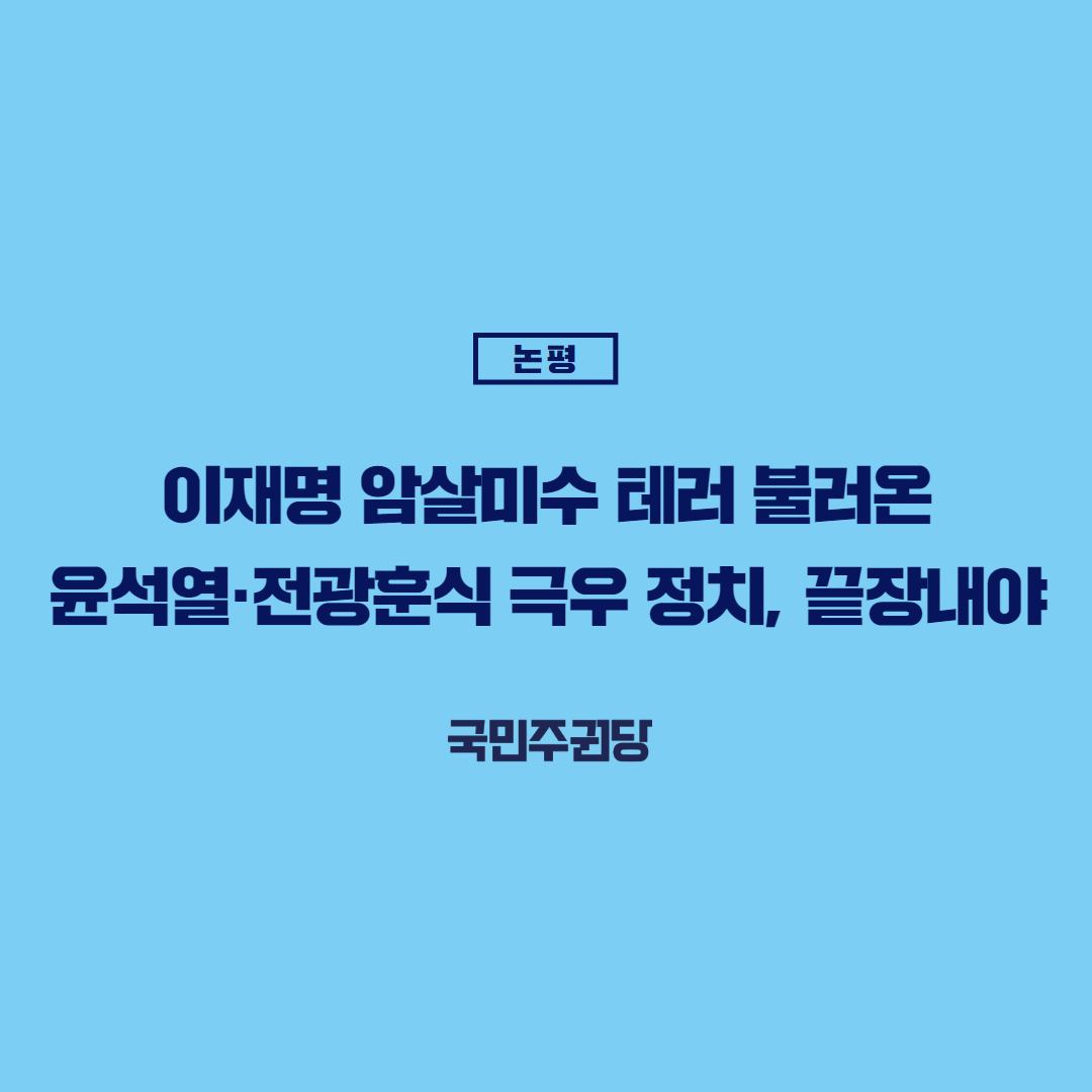 글 제목 : [논평] 이재명 암살미수 테러 불러온 윤석열·전광훈식 극우 정치, 끝장내야
