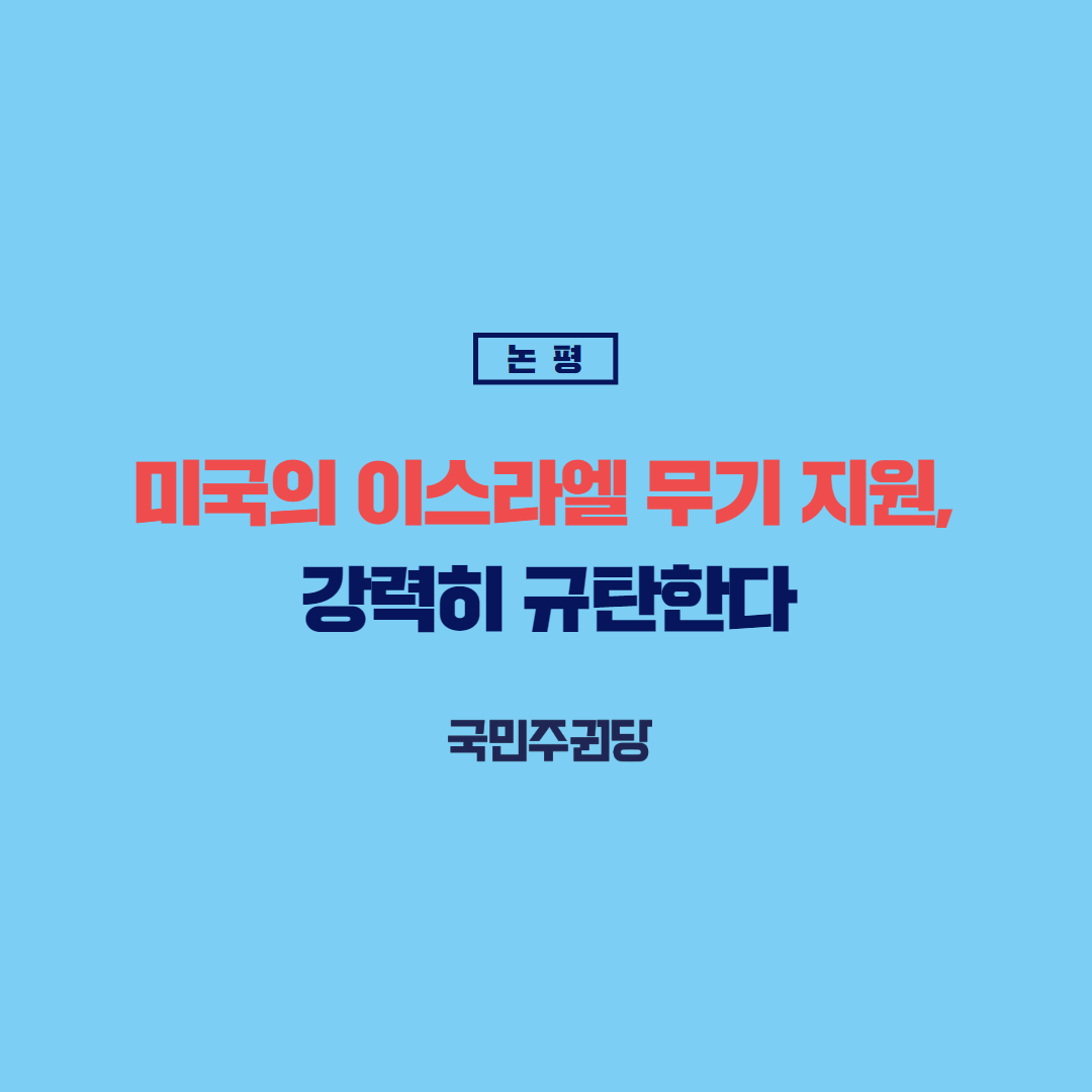 글 제목 : [논평] 미국의 이스라엘 무기 지원, 강력히 규탄한다