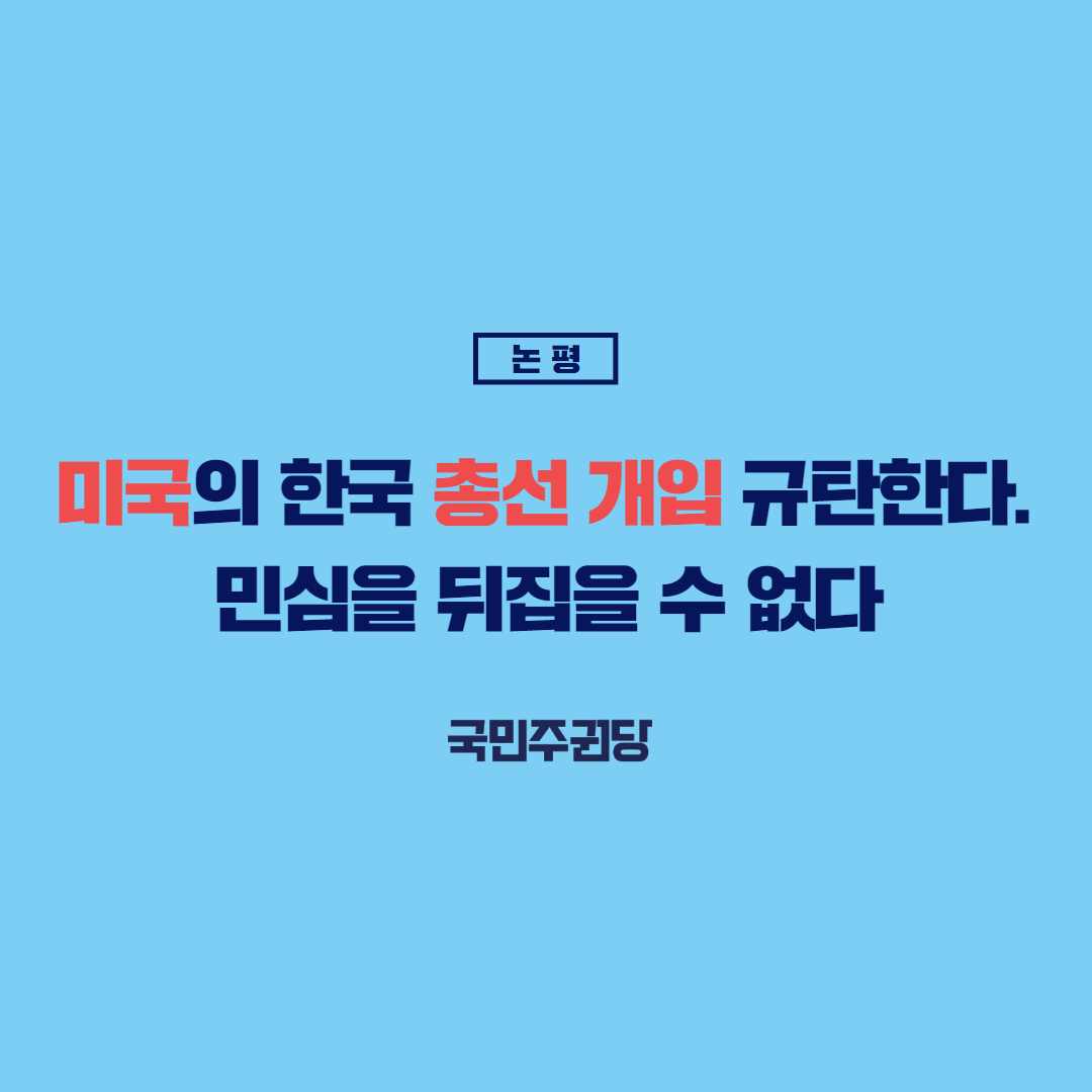글 제목 : [논평] 미국의 한국 총선 개입 규탄한다. 민심을 뒤집을 수 없다