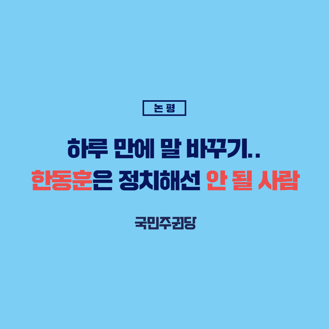 글 제목 : [논평] 하루 만에 말 바꾸기.. 한동훈은 정치해선 안 될 사람