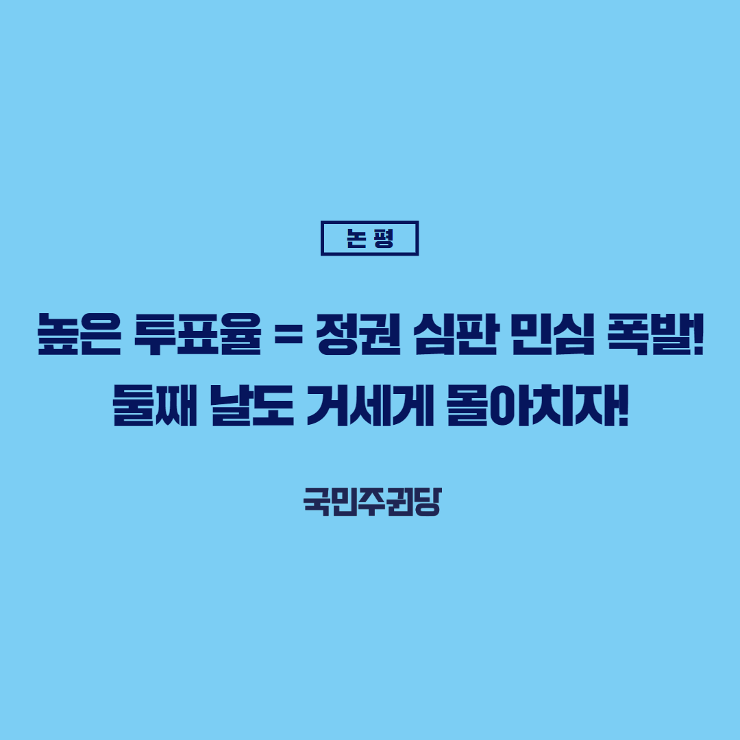 글 제목 : [논평] 높은 투표율=정권 심판 민심 폭발! 둘째 날도 거세게 몰아치자!