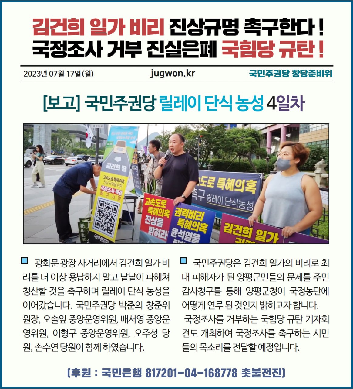 국민주권당 릴레이 단식 농성 4일차 (7월 17일)
