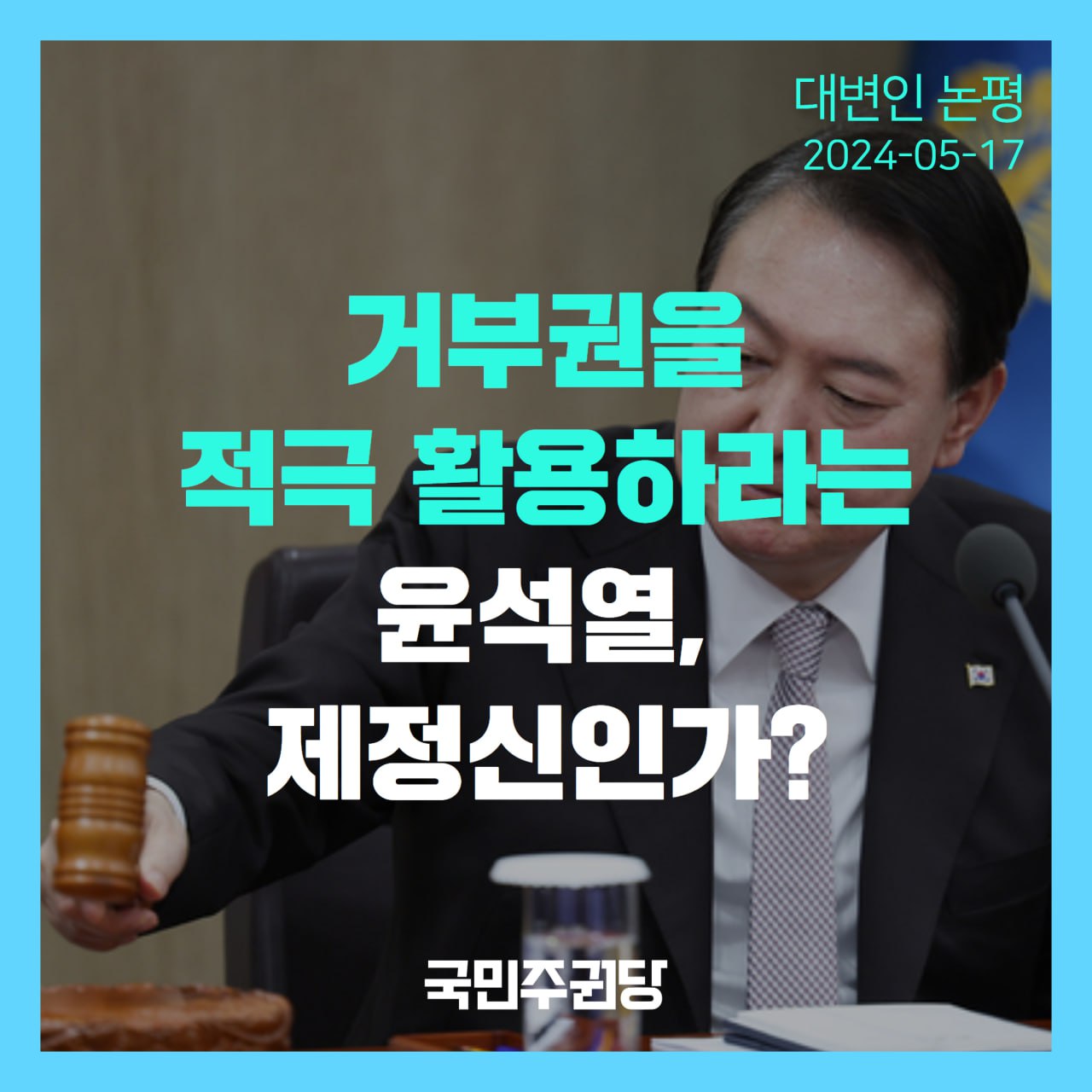 글 제목 : [대변인 논평] 거부권을 적극 활용하라는 윤석열, 제정신인가?