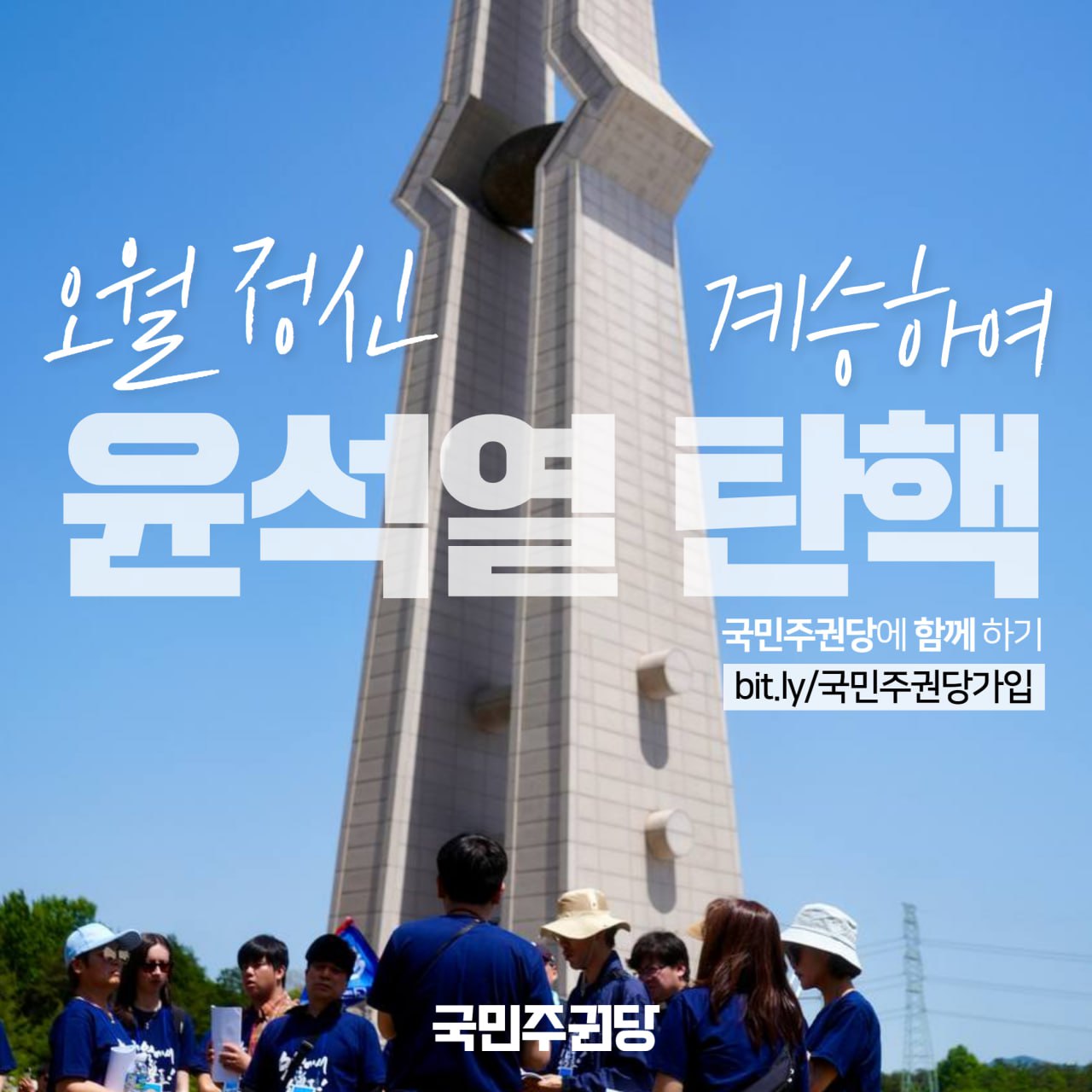 자료실/홍보자료실 2024. 5. 22. 당 홍보물 글자 작게 글자 크게 인쇄 공유 닫기 이 글을 공유합니다. 카카오스토리 페이스북 네이버블로그 트위터 링크복사 글 작성 : 2024년 05월 22일 글 제목 : 당 홍보물 "오월정신 계승! 윤석열 탄핵!" 오월정신이 살아있기에 오늘의 촛불이 타오르고 내일의 희망도 있습니다. 그 정신을 이어 국민이 주인 되는 새로운 사회를 창조합시다! "대한민국의 모든 권력은 국민으로부터 나온다" 국민의 뜻을 국민이 직접 실현합니다. 진정한 국민주권시대를 우리 손으로 만듭니다. 공유하기 게시글 관리 국민주권당 저작자표시 (새창열림)