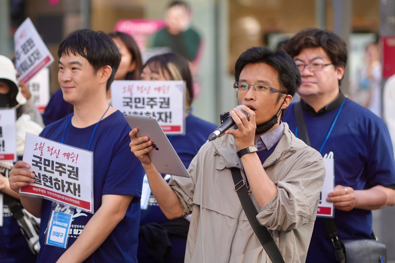 광주 시민들이 전두환 군부독재 타도를 외쳤던 그 거리에서 윤석열 탄핵을 외치는 국민주권당 정당 연설회를 진행했습니다.