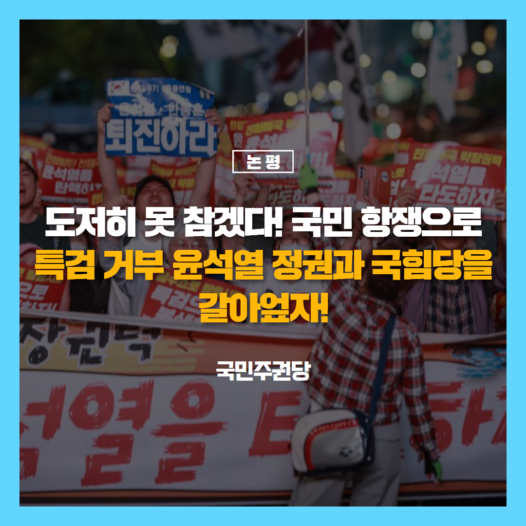 글 제목 : [논평] 도저히 못 참겠다! 국민 항쟁으로 특검 거부 윤석열 정권과 국힘당을 갈아엎자!