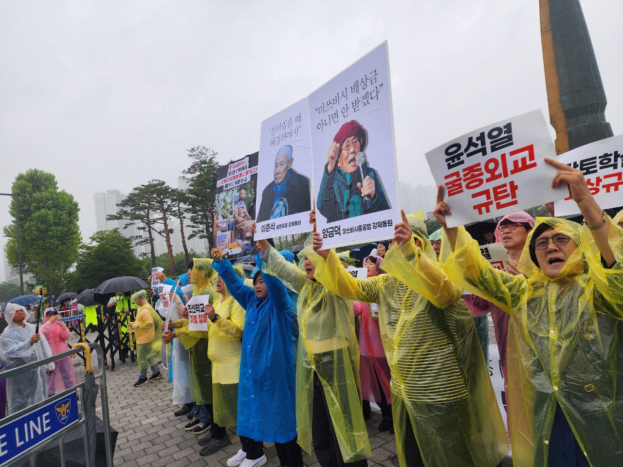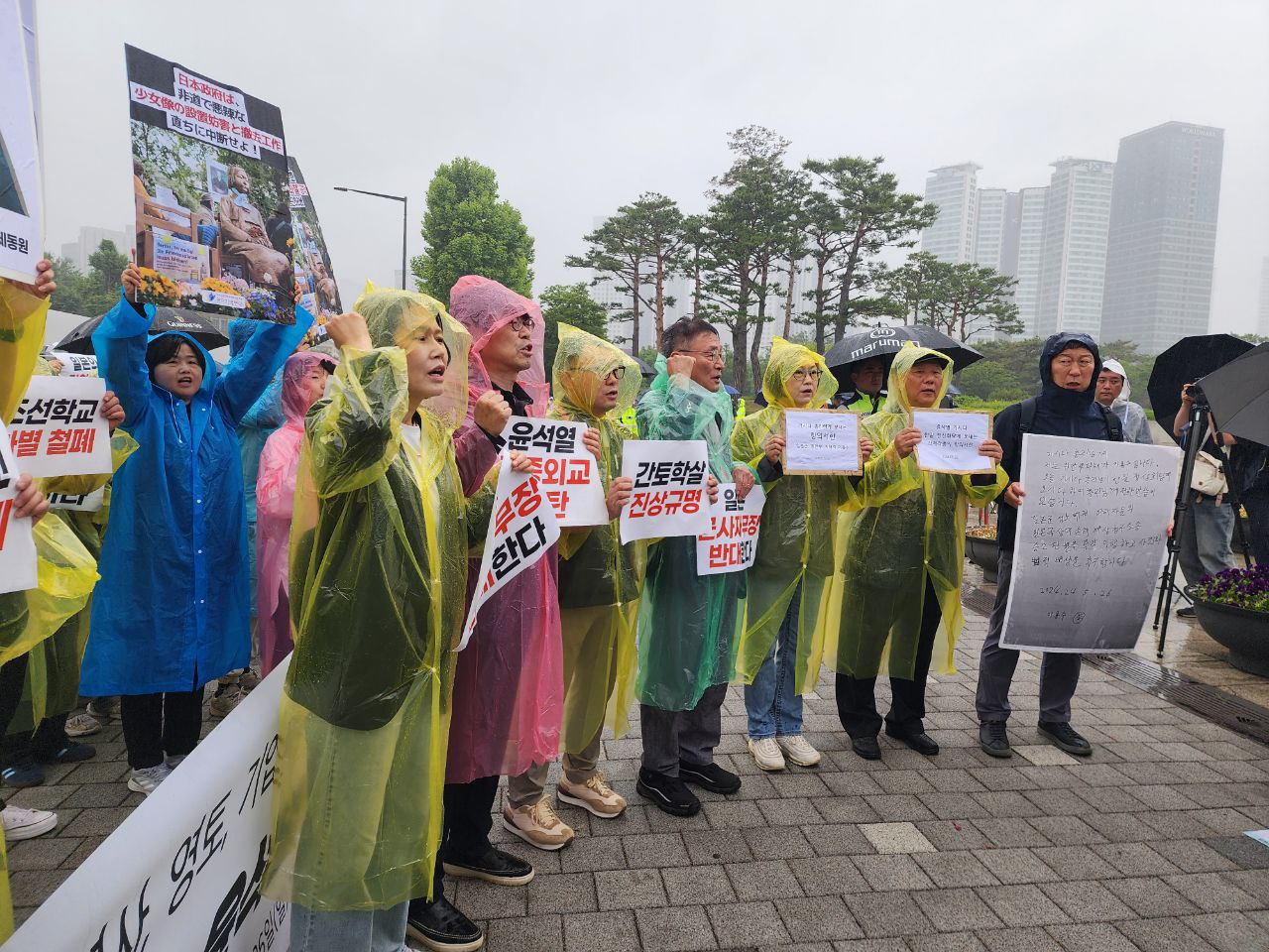비가 오는 와중에도 많은 단체와 인사분들이 함께해 일본과 윤석열 대통령을 규탄하는 목소리를 냈습니다.