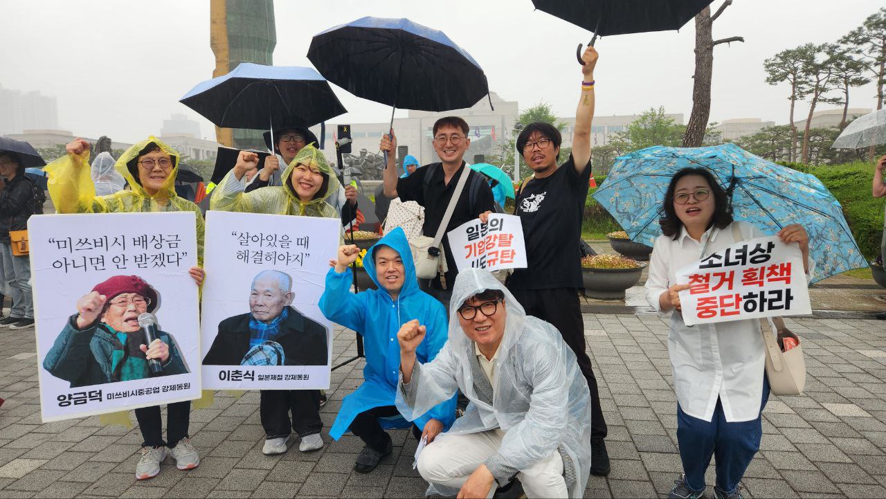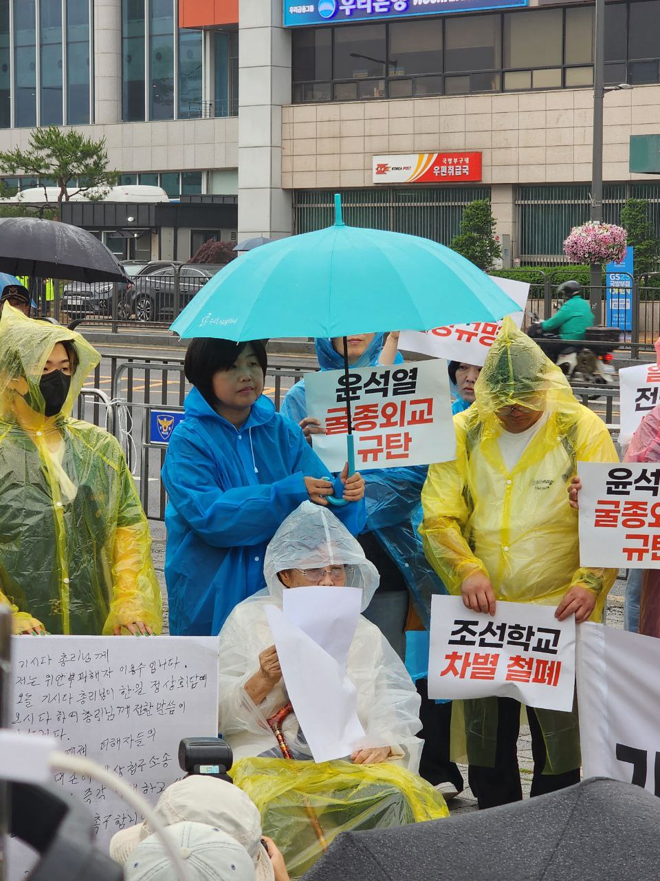 비가 오는 와중에도 많은 단체와 인사분들이 함께해 일본과 윤석열 대통령을 규탄하는 목소리를 냈습니다.