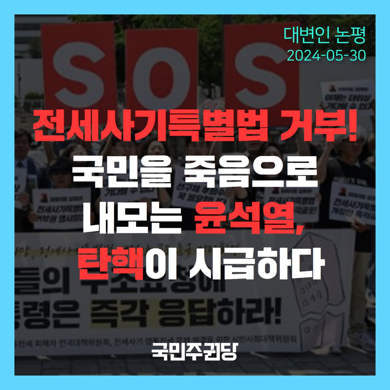 글 제목 : [논평] 전세사기특별법 거부! 국민을 죽음으로 내모는 윤석열, 탄핵이 시급하다