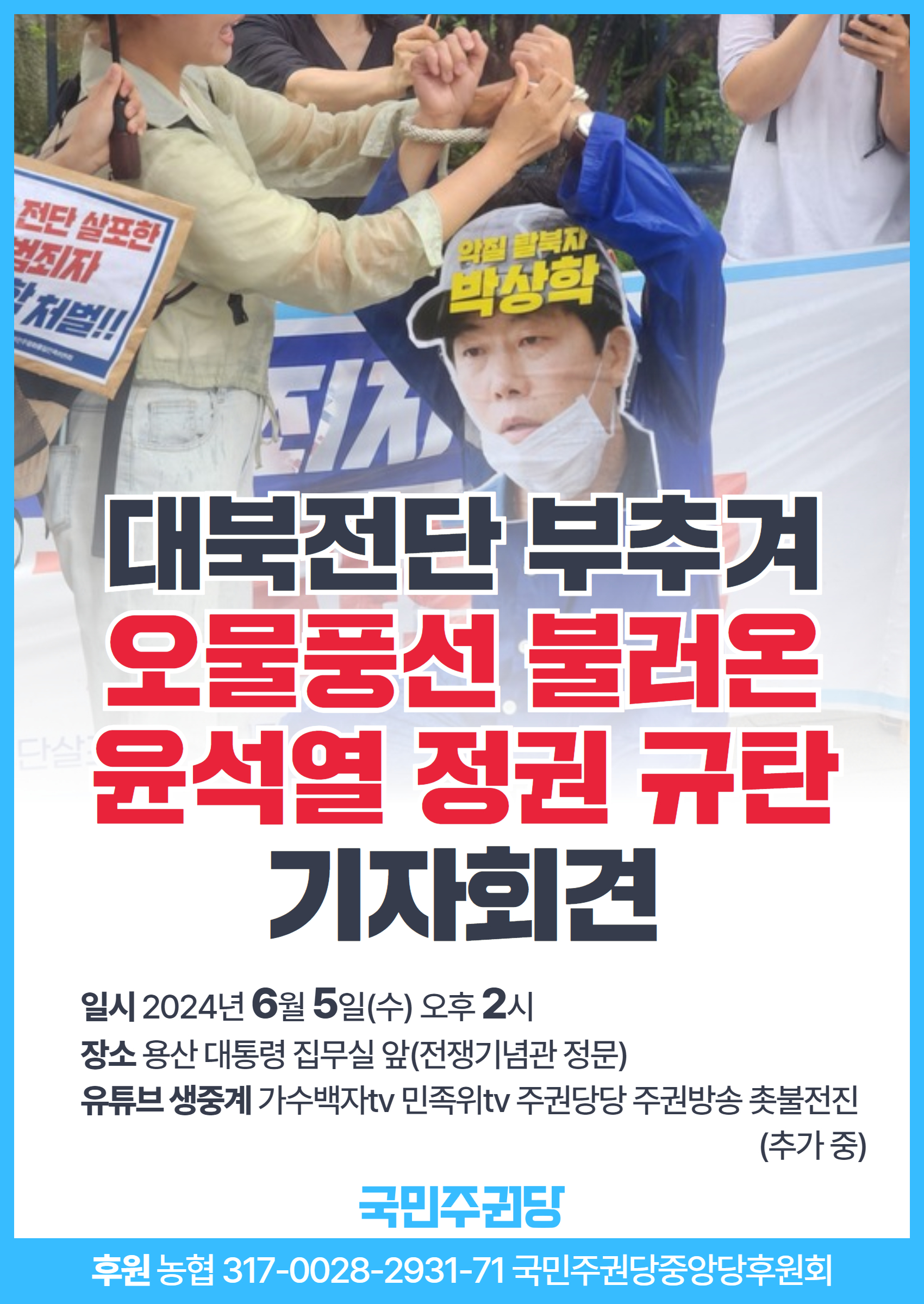 대북 전단 살포를 비호·방조하고 대북전단금지법 위헌 결정을 끌어내 전단 살포를 합법화한 윤석열 정권이야말로 오물풍선 사태의 주범입니다.