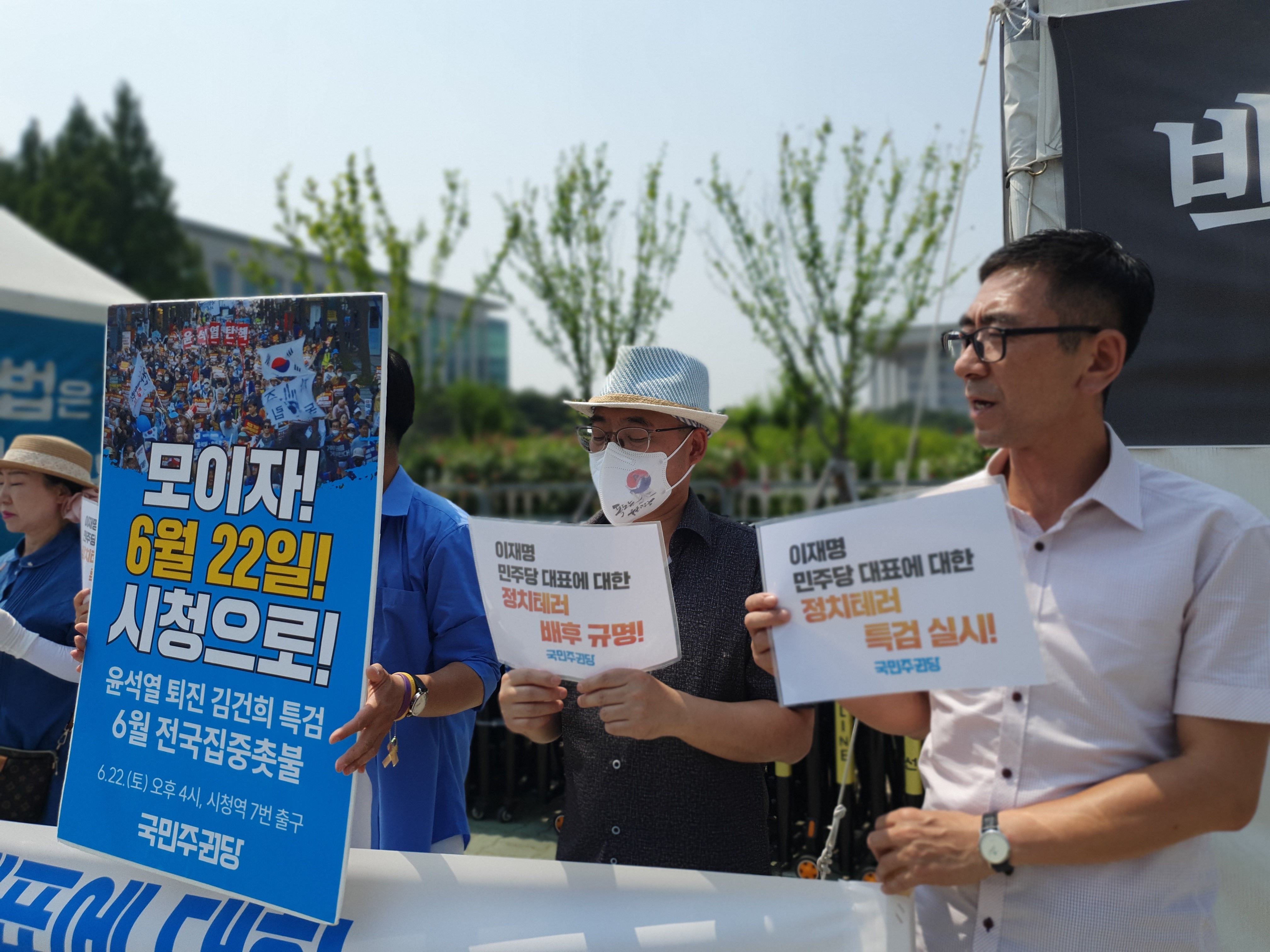 국민주권당, 이재명 민주당 대표 정치테러 특검 촉구 기자회견 참가자 일동