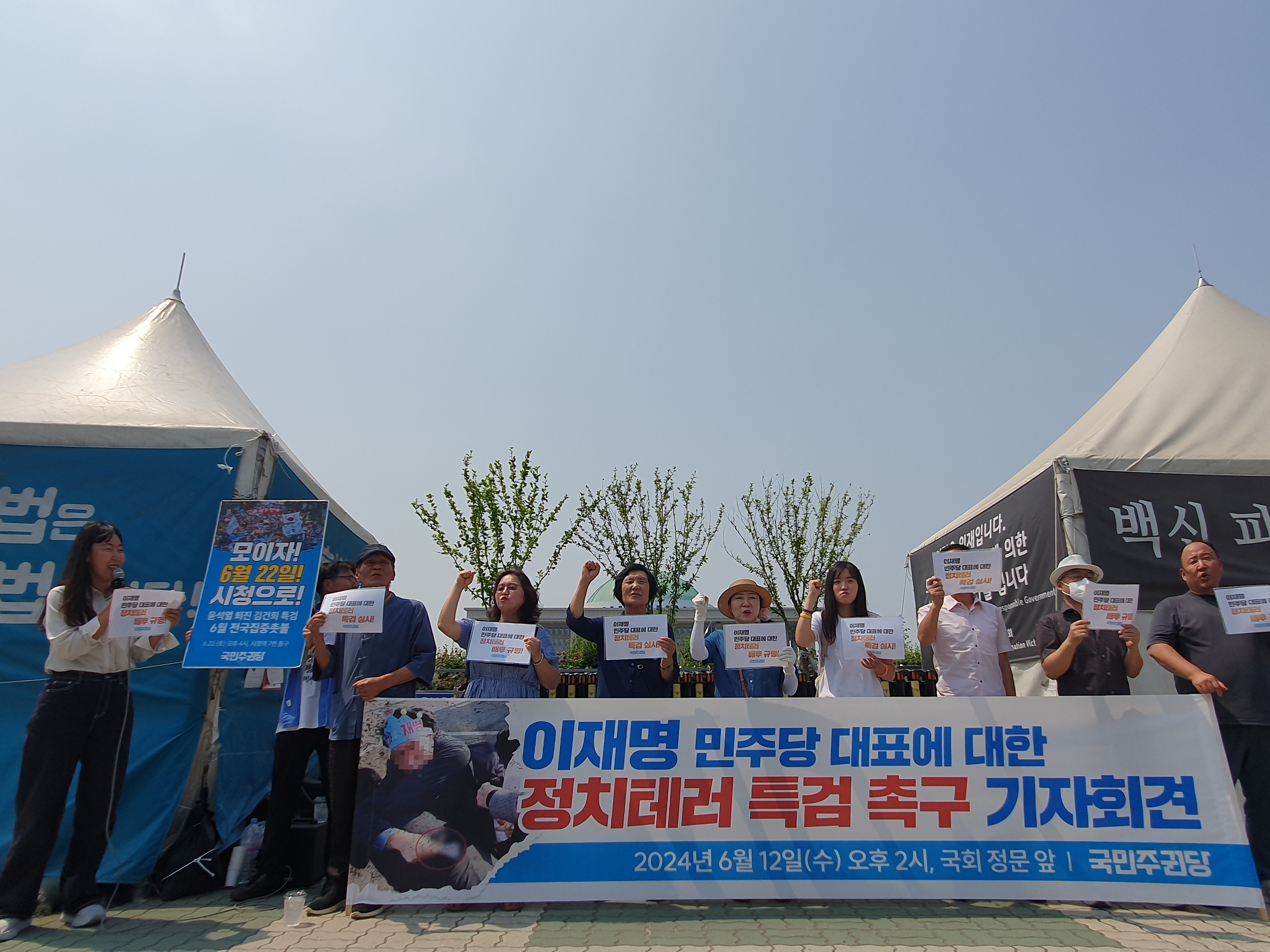 ○ 12일 오후 2시 국회 정문 앞에서 <이재명 민주당 대표에 대한 정치테러 특검 촉구 기자회견>을 진행하였습니다.