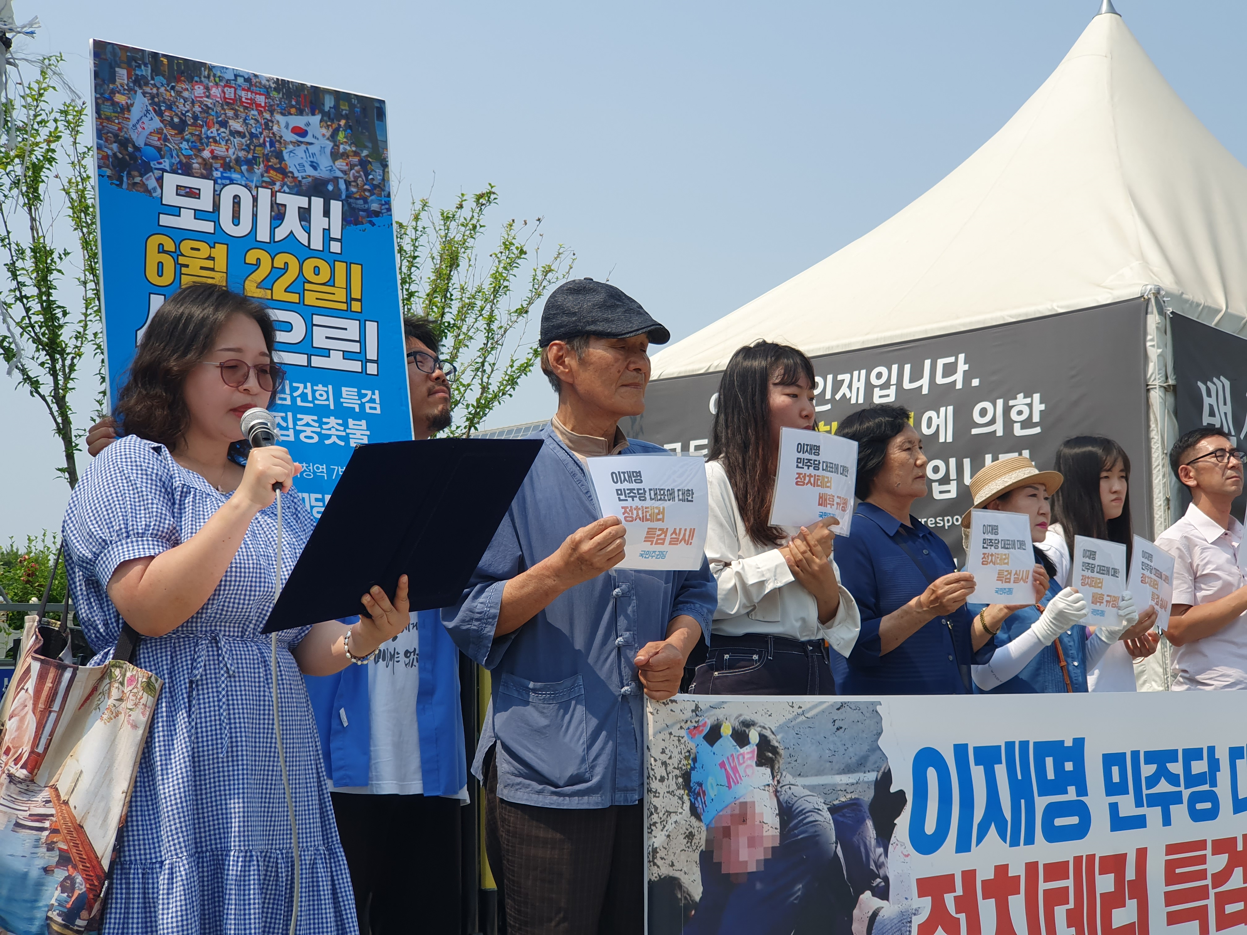 국민주권당, 이재명 민주당 대표 정치테러 특검 촉구 기자회견 참가자 일동