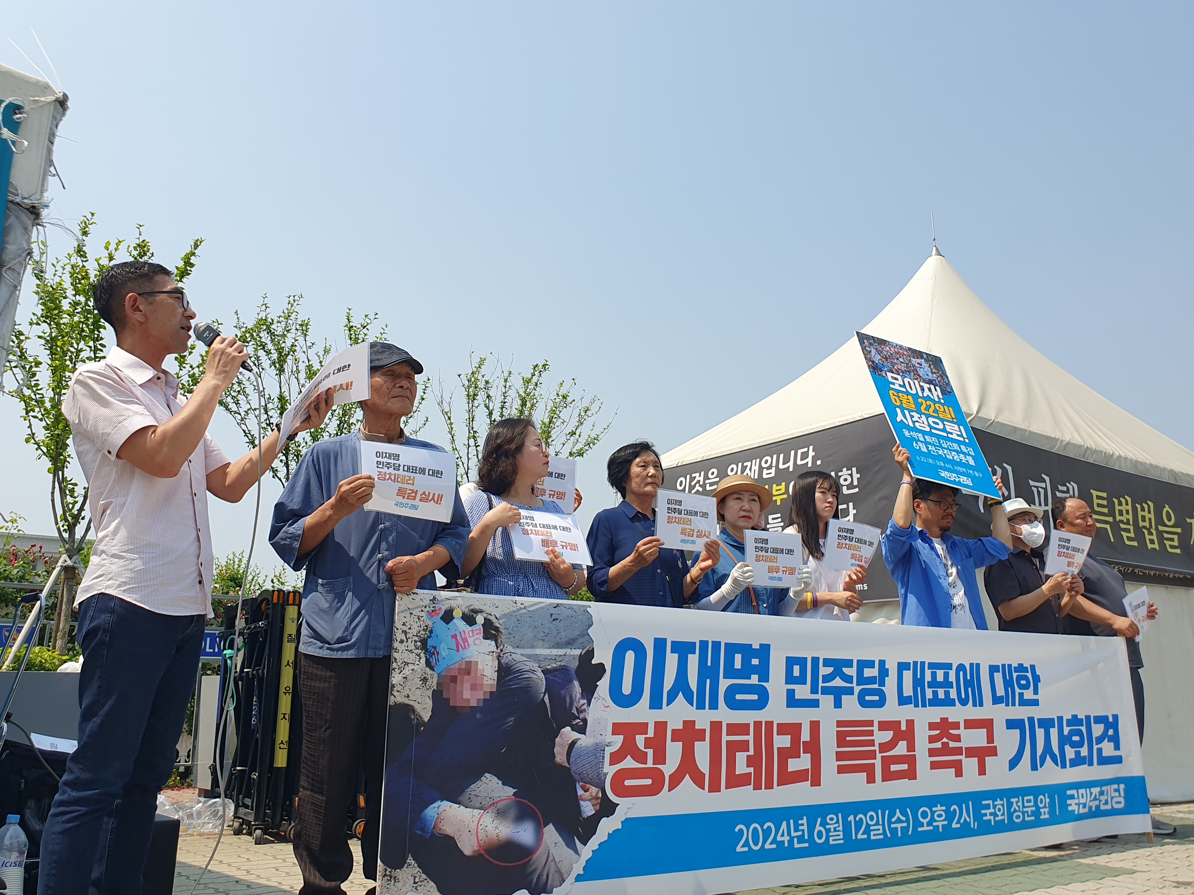 ○ 12일 오후 2시 국회 정문 앞에서 <이재명 민주당 대표에 대한 정치테러 특검 촉구 기자회견>을 진행하였습니다.