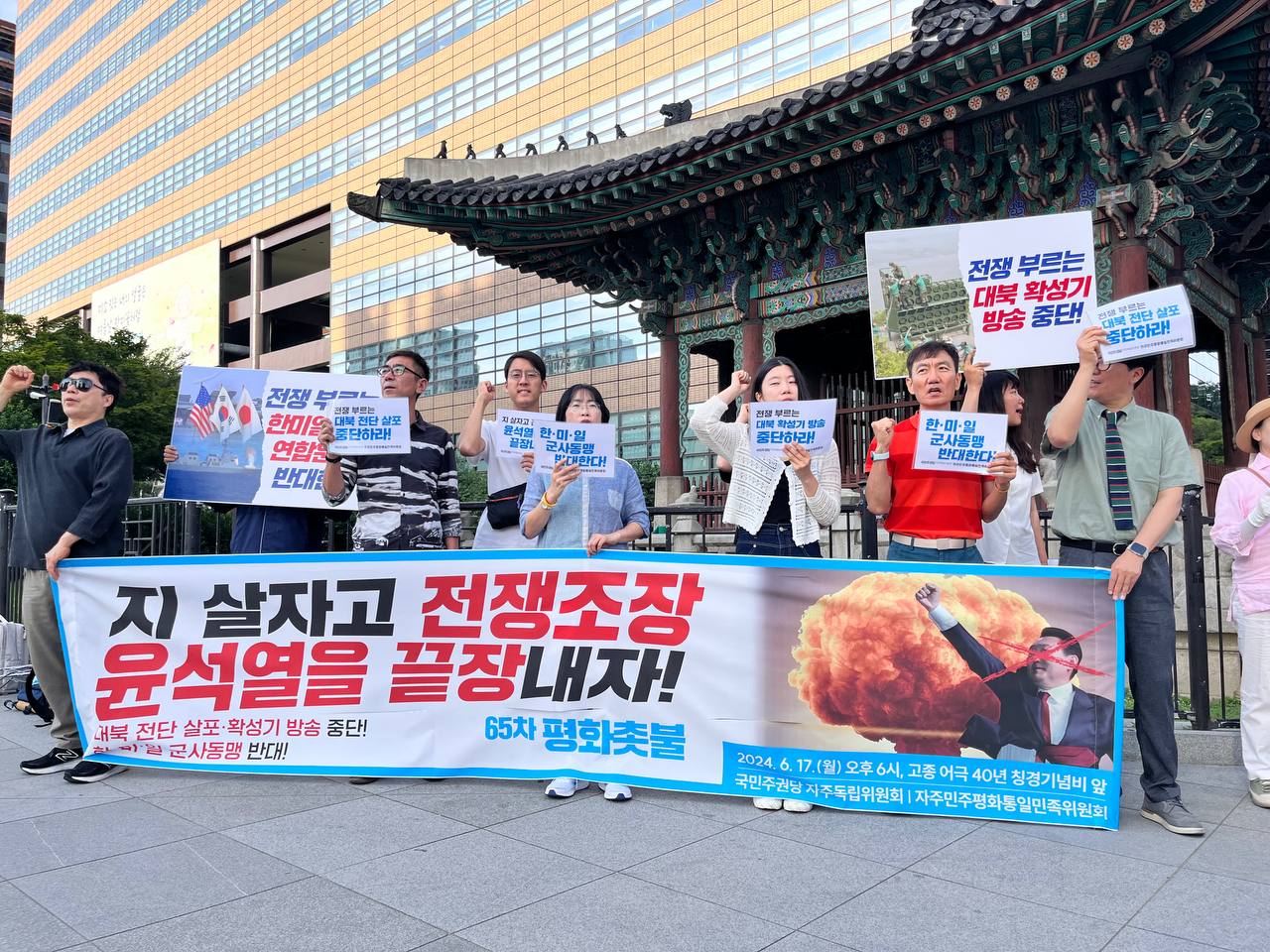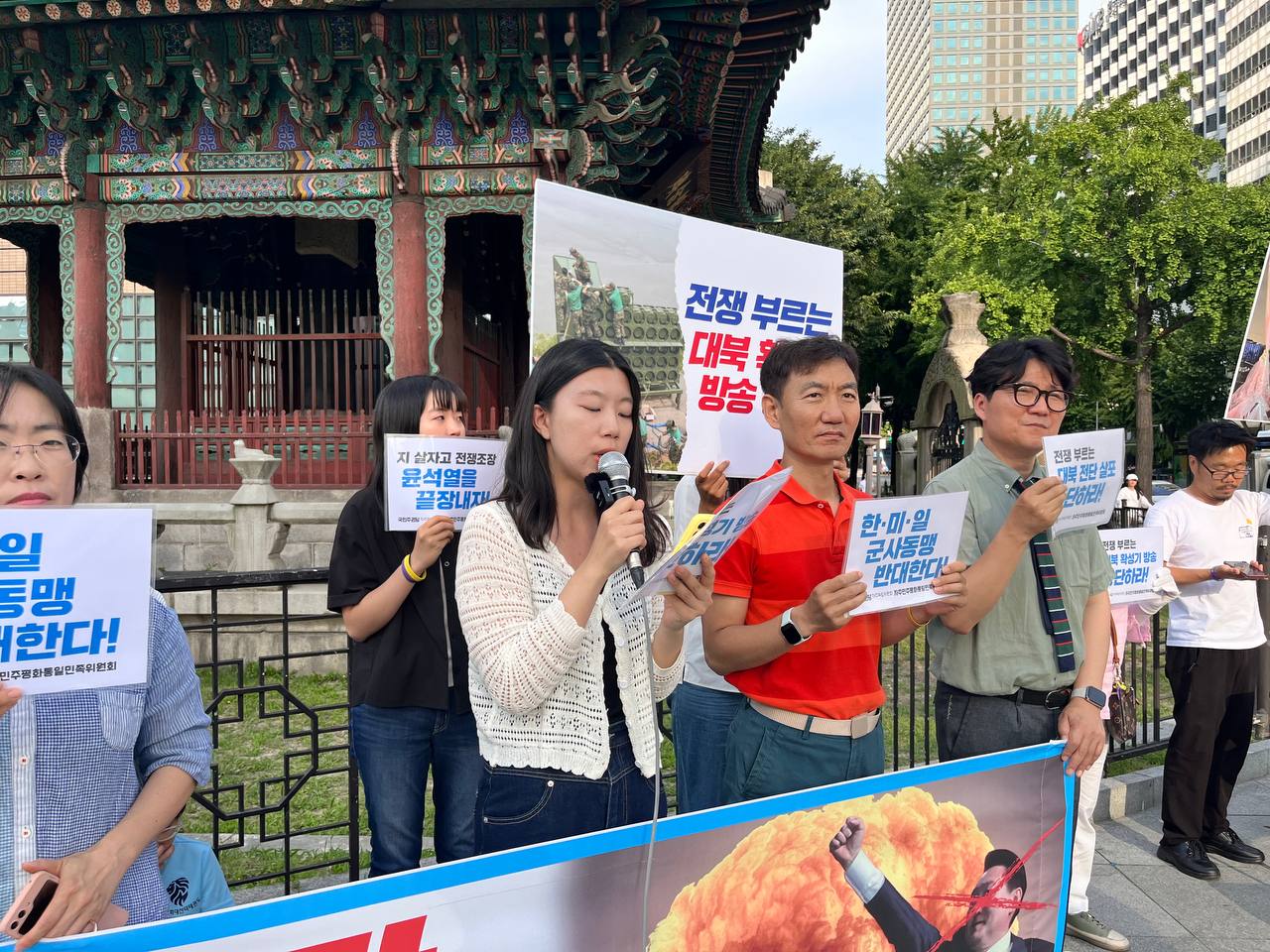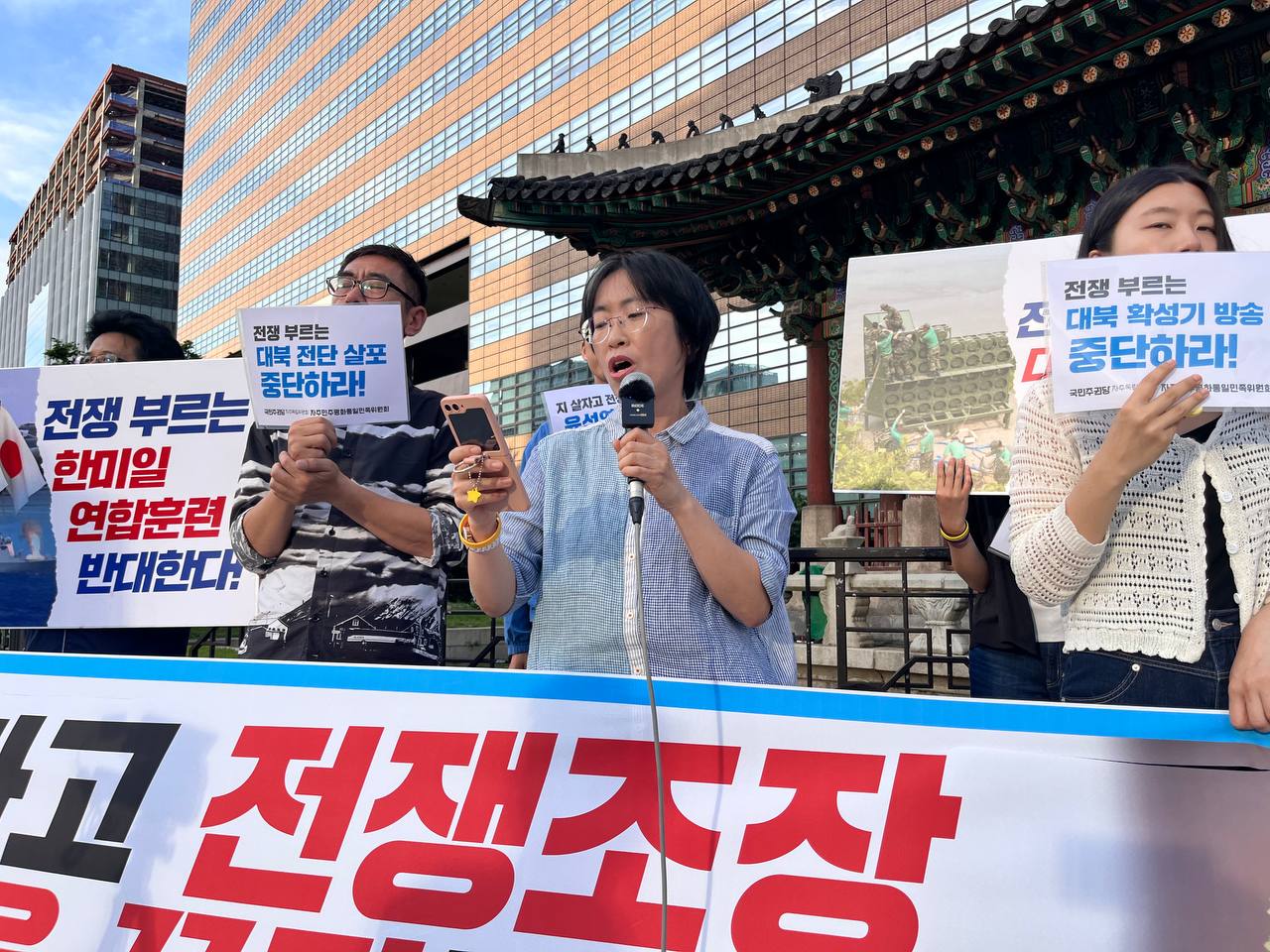 "한·미·일 군사 동맹 반대한다!"