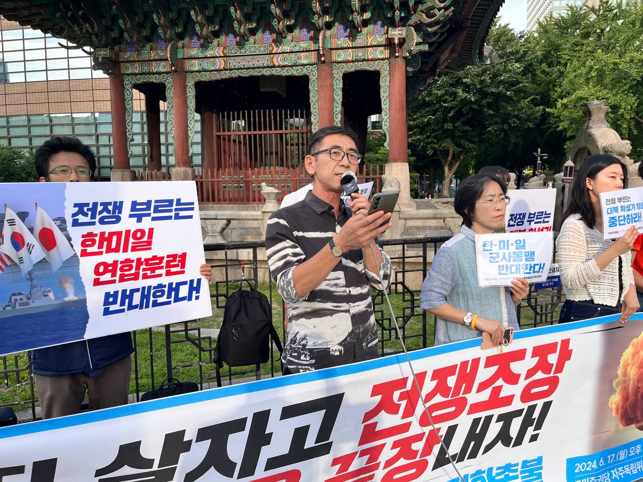 "한·미·일 군사 동맹 반대한다!"