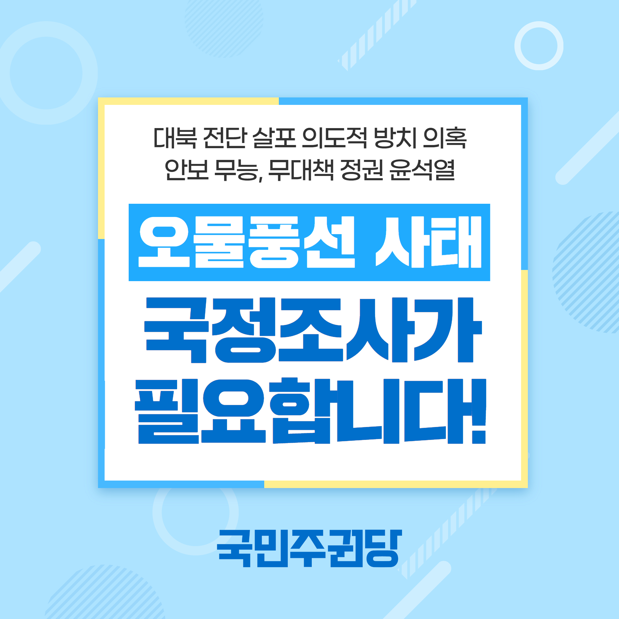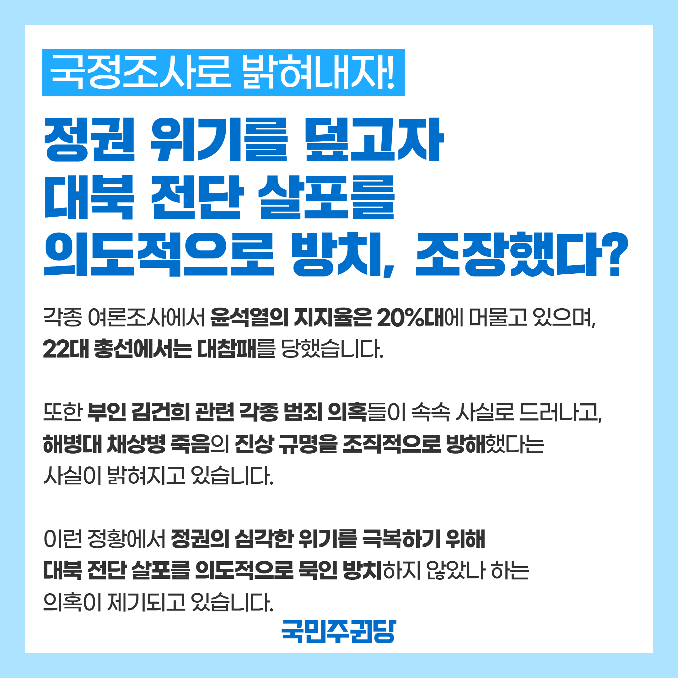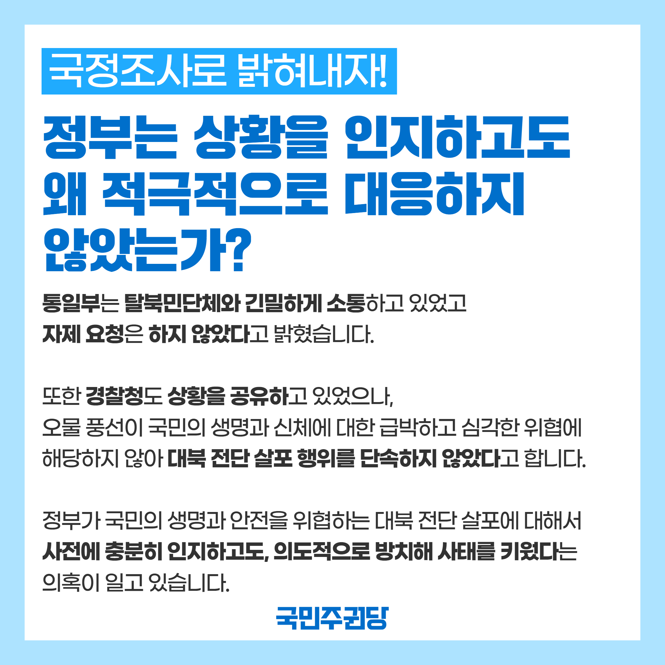 대북전단 살포 의도적 방치 및 오물 풍선 사태 의혹에 대한 진상규명을 위한 국정조사가 필요합니다.