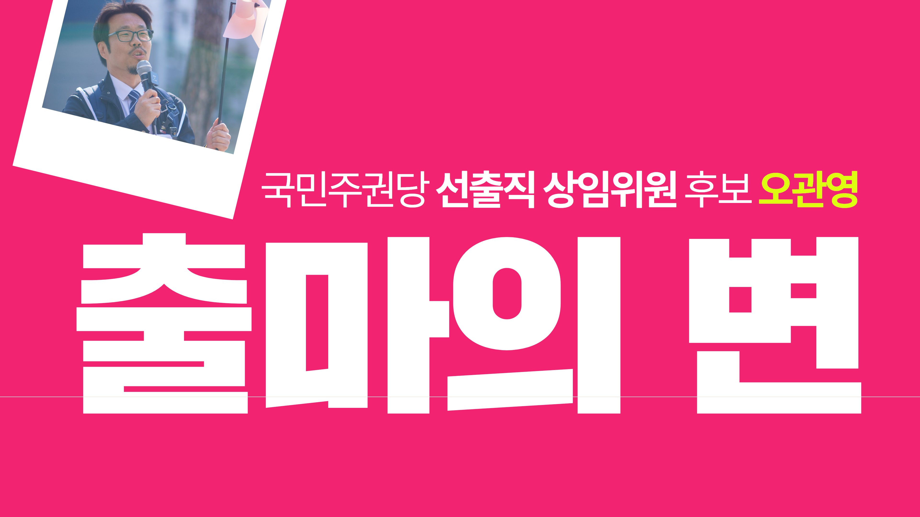 글 제목 : [국민주권당 선출직 상임위원 출마의 변] 오관영 후보