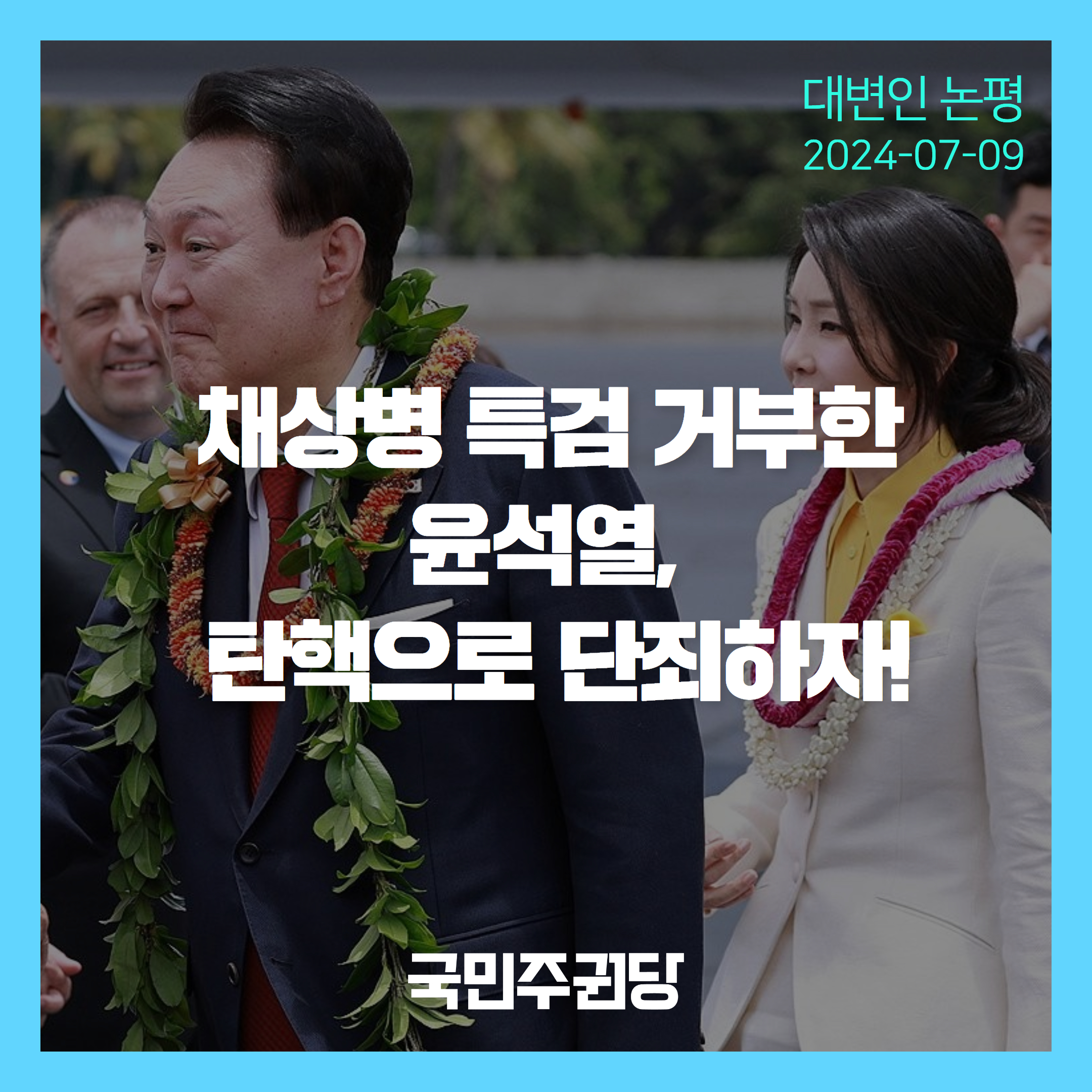 글 제목 : [대변인 논평] 채상병 특검 거부한 윤석열, 탄핵으로 단죄하자!