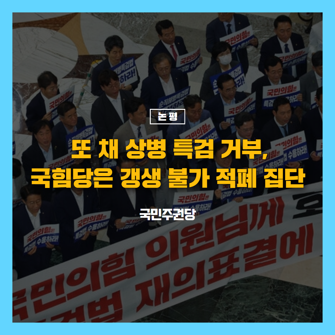 글 제목 : [논평] 또 채 상병 특검 거부 국힘당은 갱생 불가 적폐 집단