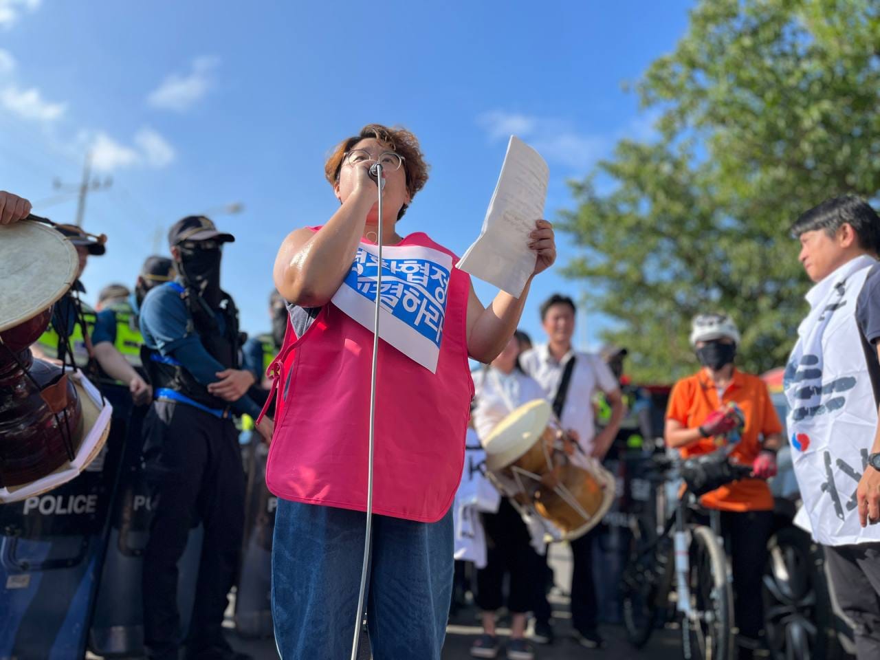 오솔잎 국민주권당 경기도당 창당추진위원장은 발언대에 나서 전쟁반대, 전쟁광 윤석열탄핵을 외쳤습니다!