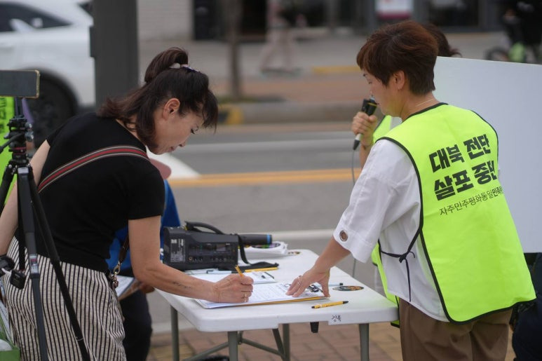 ▲ 서명운동을 진행하는 감시단원. ⓒ 대북 전단 감시단