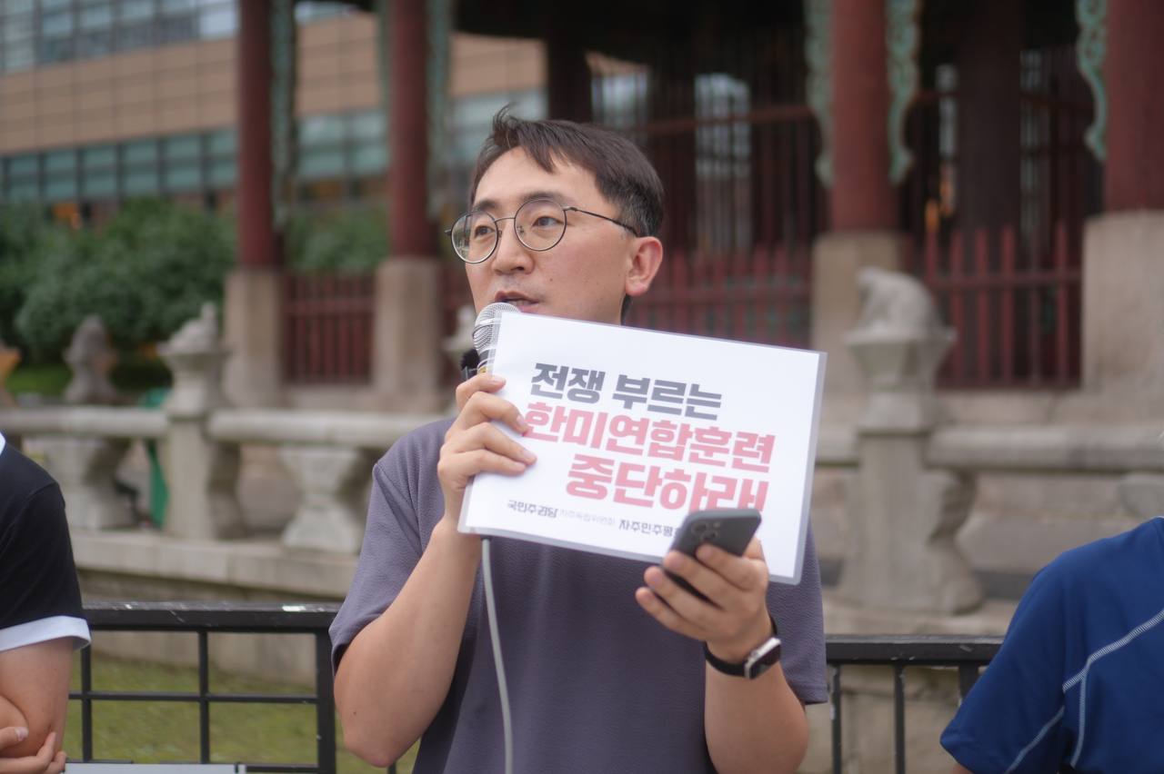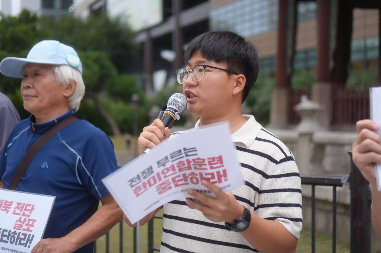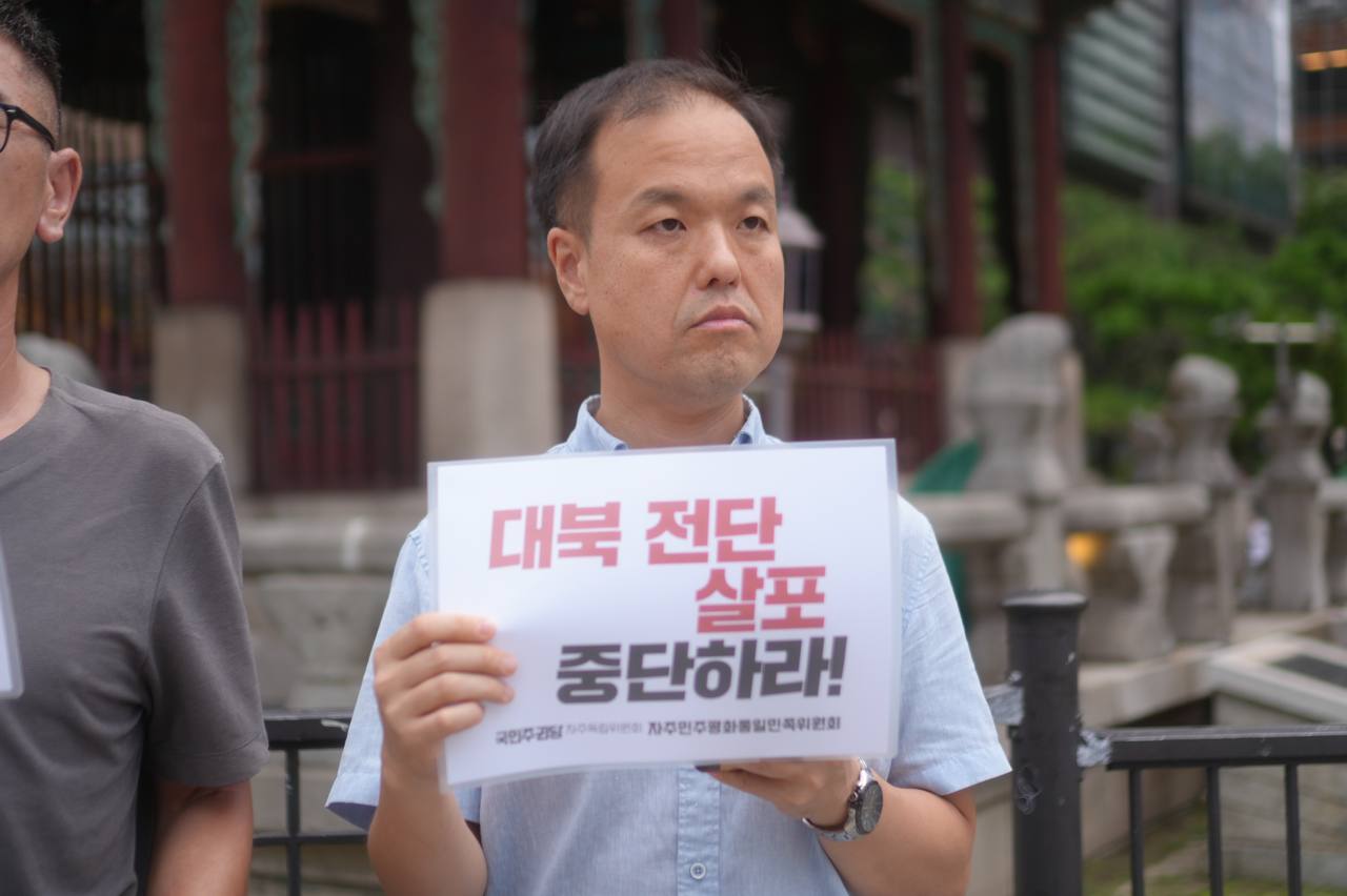 박대윤 국민주권당 홍보국장은 “막을 방법이 없는게 아닙니다. 막을 의지가 없는 것입니다. 일부러 부추기고 있는 것입니다.”라며 대북 전단 살포를 조장하는 윤석열 정권을 규탄하였습니다.