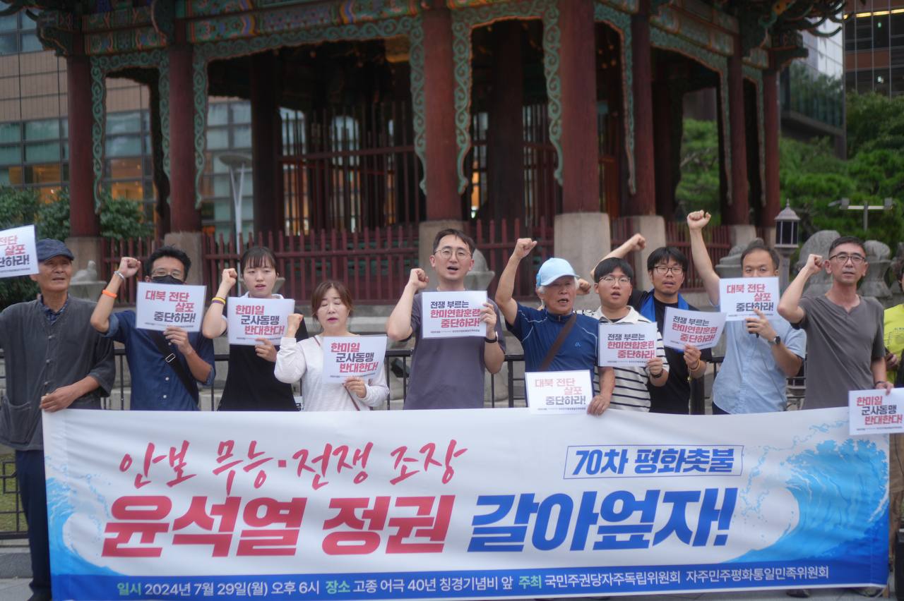 29일(월) 오후 6시 고종 어극 40년 칭경기념비 앞에서 ‘안보 무능·전쟁 조장 윤석열 정권 갈아엎자! 70차 평화촛불’을 진행하였습니다.