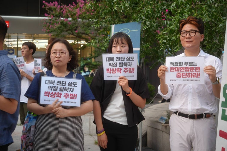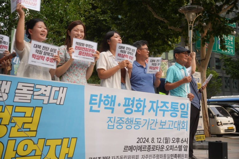 이어 윤숙희 대북 전단 감시단원은 대북 전단 살포가 지속되고 윤석열 정권이 전방 지역 포사격 훈련과 확성기 방송을 재개해 “지금 당장 전쟁이 나도 이상하지 않은 상황을 넘어 전쟁이 나지 않는 게 이상한 상황이 되어버렸습니다”라면서 “전단 살포 악질 탈북자들을 처벌·추방하고, 이를 묵인·방조하며 전쟁을 몰고 오는 윤석열 정권을 갈아엎어야 합니다”라고 말했습니다.