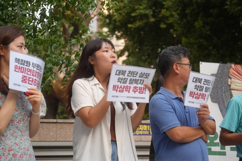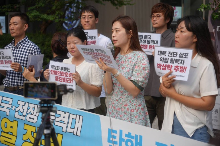 이어 윤숙희 대북 전단 감시단원은 대북 전단 살포가 지속되고 윤석열 정권이 전방 지역 포사격 훈련과 확성기 방송을 재개해 “지금 당장 전쟁이 나도 이상하지 않은 상황을 넘어 전쟁이 나지 않는 게 이상한 상황이 되어버렸습니다”라면서 “전단 살포 악질 탈북자들을 처벌·추방하고, 이를 묵인·방조하며 전쟁을 몰고 오는 윤석열 정권을 갈아엎어야 합니다”라고 말했습니다.