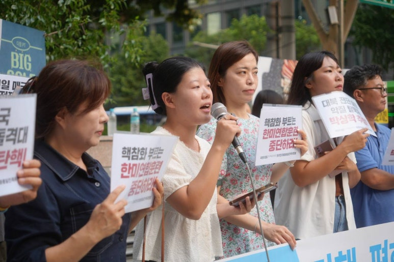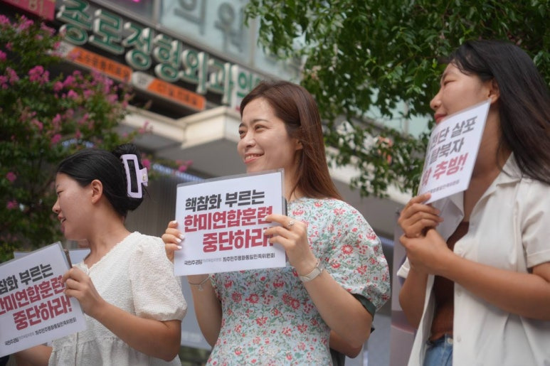 두 번째 연사로 나선 도영경 국민주권당 당원은 “윤석열 정권이 들어선 이후 쉬지 않고 해대는 군사훈련, 말이 훈련이지 사실상 전쟁 준비이자 전쟁 연습이라는 걸 모두가 아는 이런 훈련, 하면 할수록 전쟁 위기만 커지고 국민 혈세만 낭비하는 이런 훈련을 대체 왜 자꾸 하는 것”이냐며 “국민의 안전과 생존은 안중에도 없는 한반도 핵전쟁 책동, 핵 참화와 공멸로 몰아가는 한미연합훈련을 한시라도 빠르게 전면 중단해야 합니다”라고 주장하였습니다.