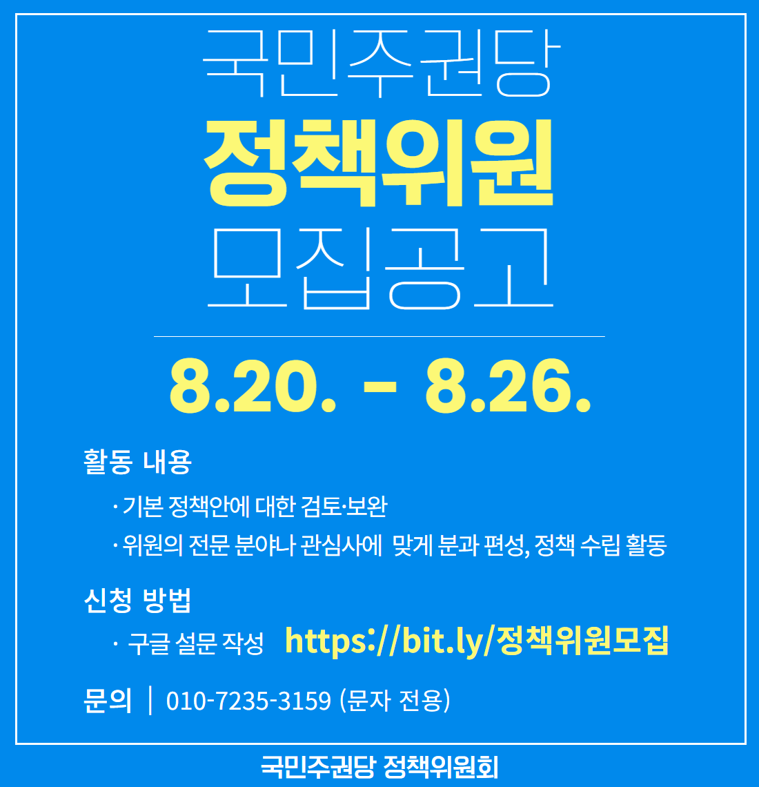 정책위원회는 앞으로 활동을 개시하려 하며, 이에 정책위원을 추가로 모집합니다.