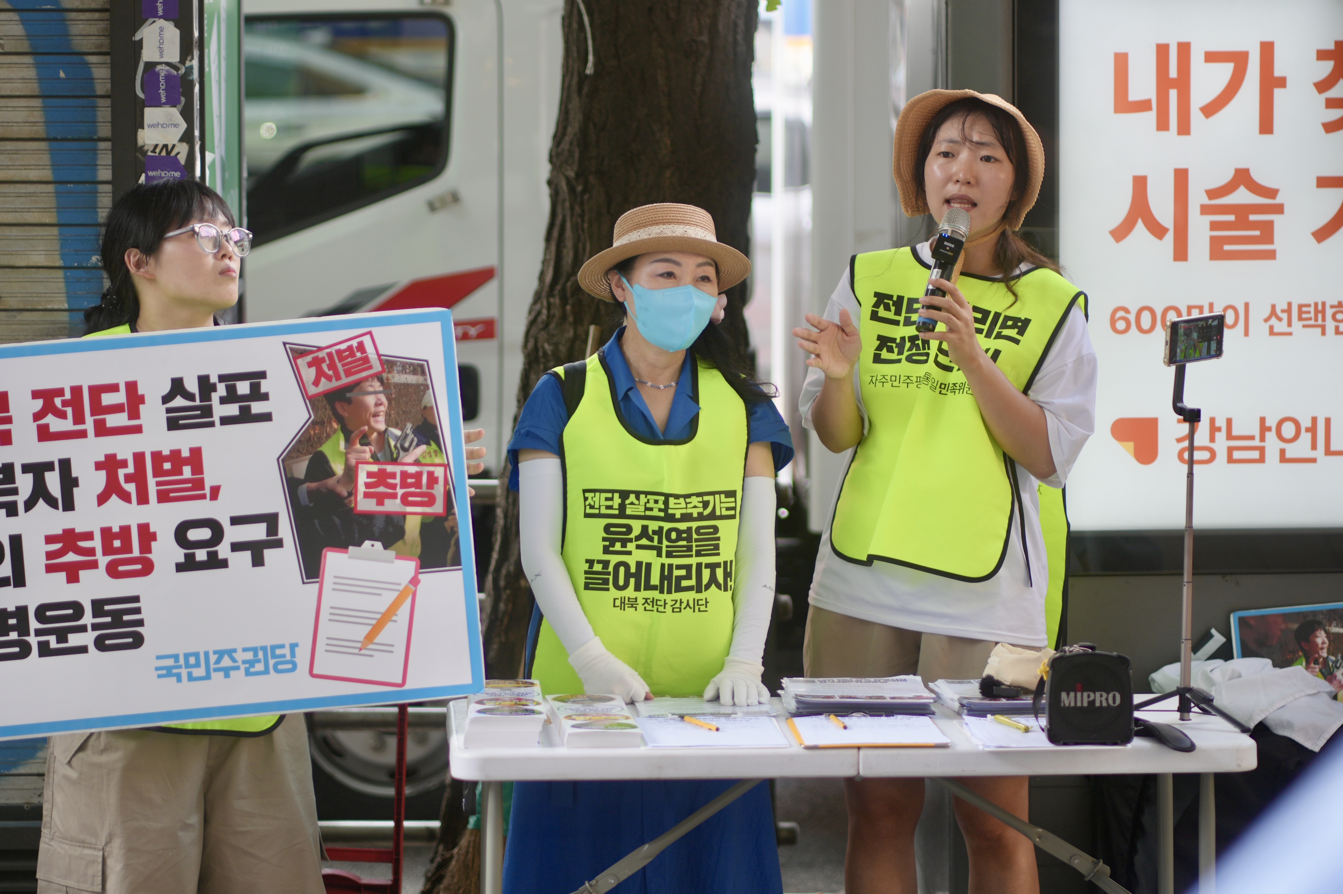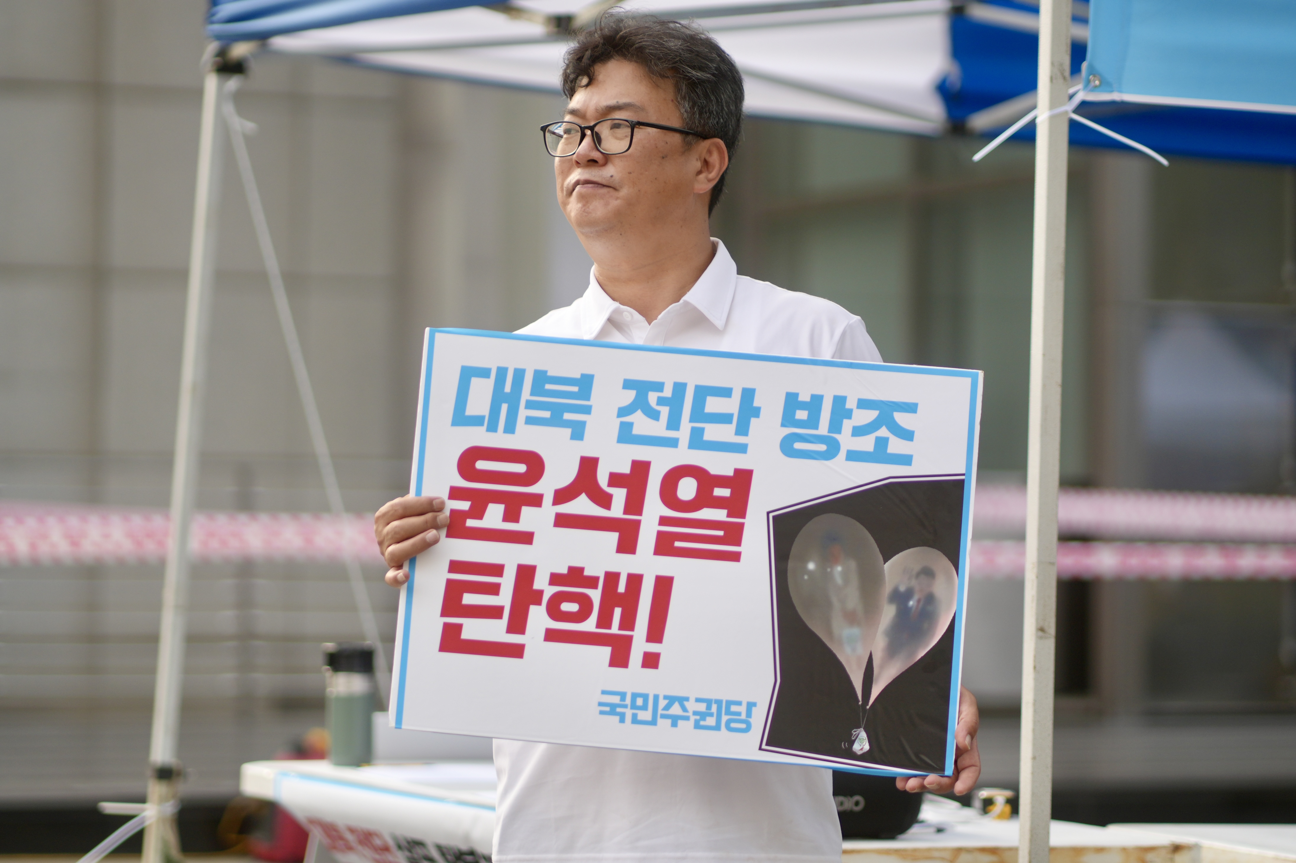 구산하 국민주권당 공동위원장은 “서명운동을 진행하는 동안 전쟁을 반대하고 박상학을 증오하며 전단 살포를 부추기는 윤석열 정권에 분노하는 여론이 극에 달해 있다는 걸 체감했다”라고 말했습니다.