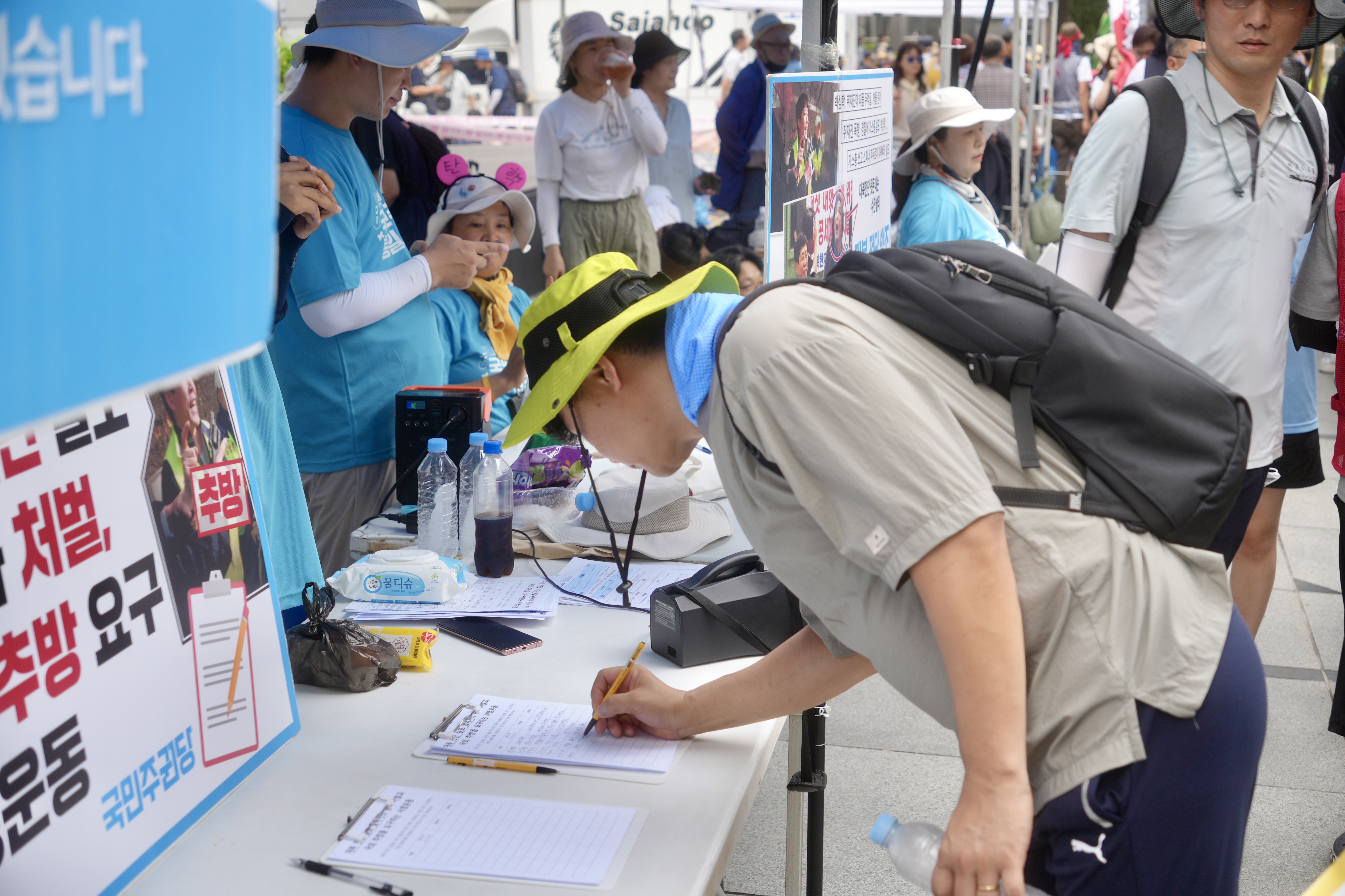 위 기간 매주 토요일(8월 24일 제외) ‘윤석열 탄핵 김건희 특검 촛불대행진’ 현장에서도 진행하였는데, 각계각층 시민들이 적극적으로 서명에 동참했습니다.