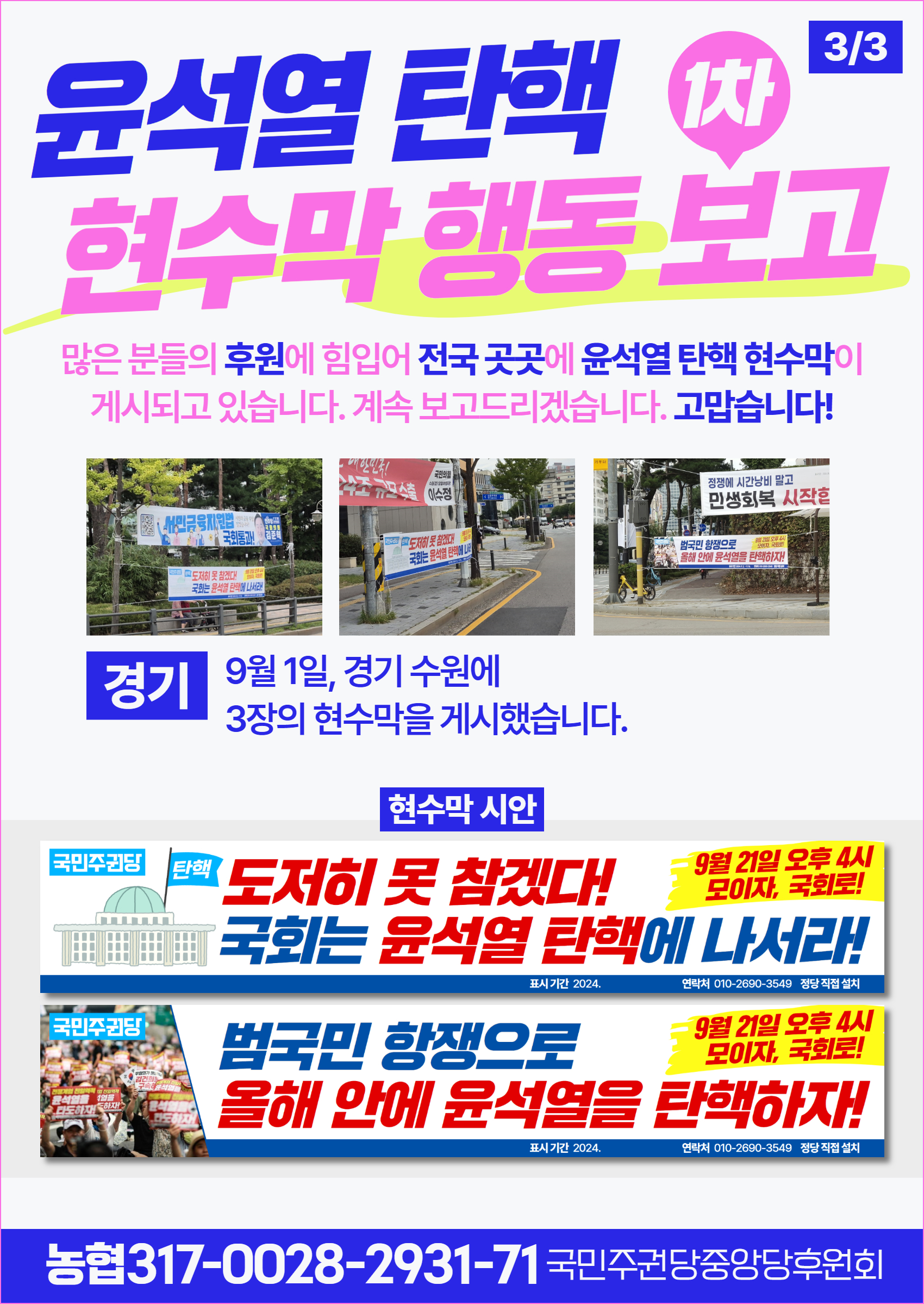 글 제목 : [보고] 윤석열 탄핵 현수막 행동 1차 보고