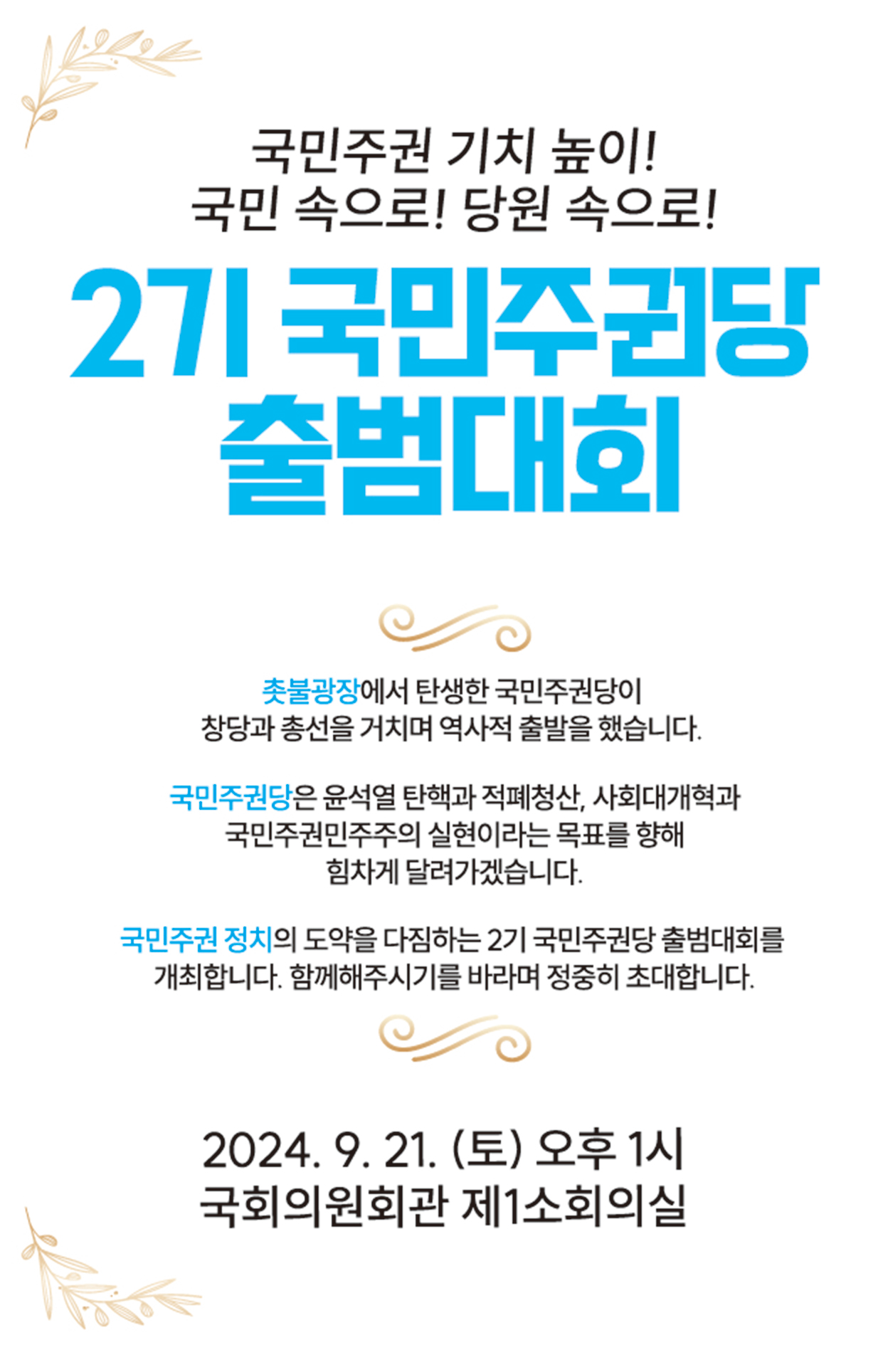 글 제목 : [초대장] 2기 국민주권당 출범대회에 초대합니다 🎉