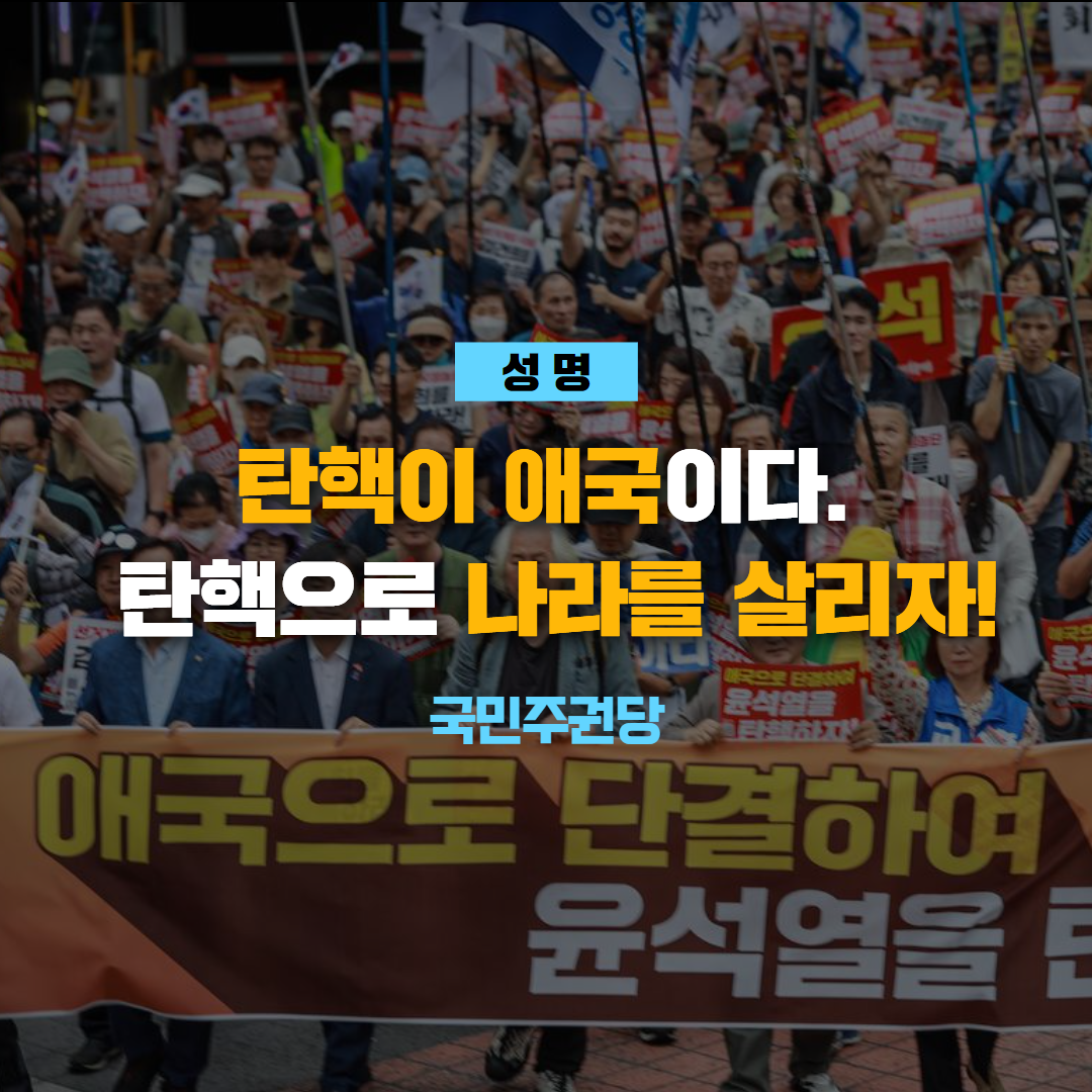 탄핵이 애국이다. 윤석열 대통령을 당장 탄핵하지 않고서는 무너지는 이 나라를 바로잡을 수 없다. 윤석열 탄핵은 진보, 보수의 문제가 아니고 어떤 가치관의 문제도 아니다. 나라를 파탄 내고 팔아먹으며 국민의 생존 자체를 위협하는 불법무도, 무능한 정부를 합법적으로 교체하는 일이다. 윤석열 탄핵은 국민의 권리이고, 주권자의 당연한 선택이다.