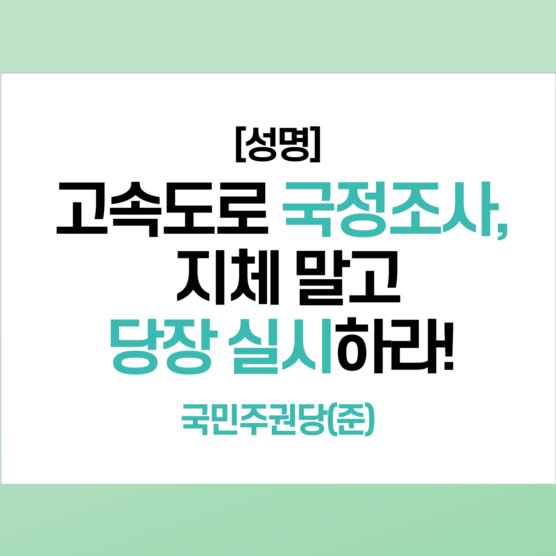 글 제목 : [성명] 고속도로 국정조사, 지체 말고 당장 실시하라!