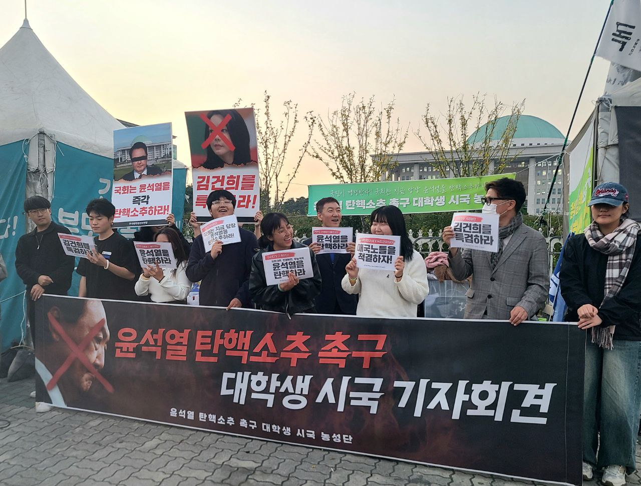 국회 정문 앞에서 윤석열 탄핵소추안 발의를 촉구하고, 윤석열의 계엄 시도를 반대하는 서명 및 홍보활동을 했습니다.