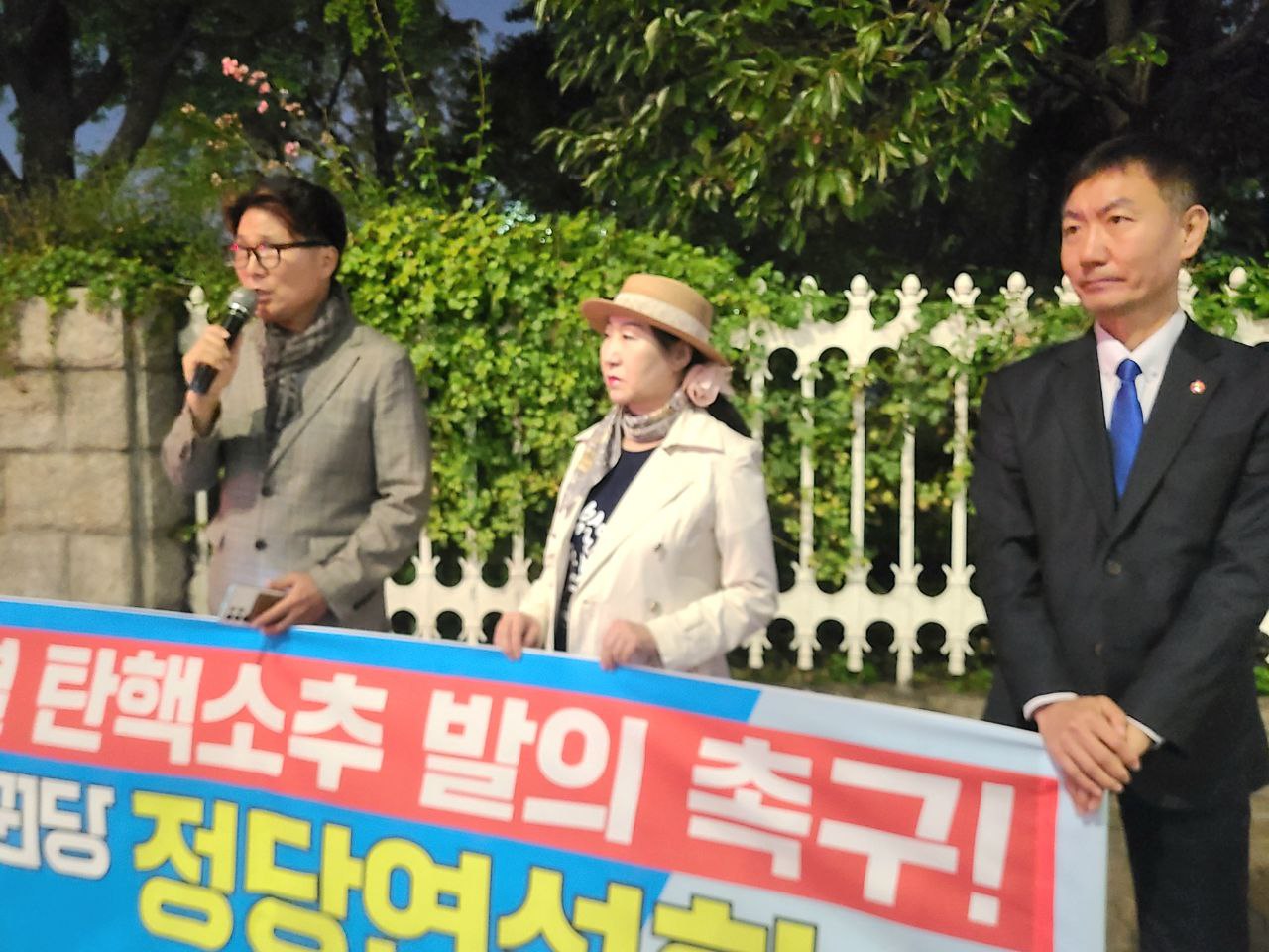 주권당의 신동호 서울시당 위원장, 백자 자주독립위원장이 피켓 시위를 진행하였습니다.
