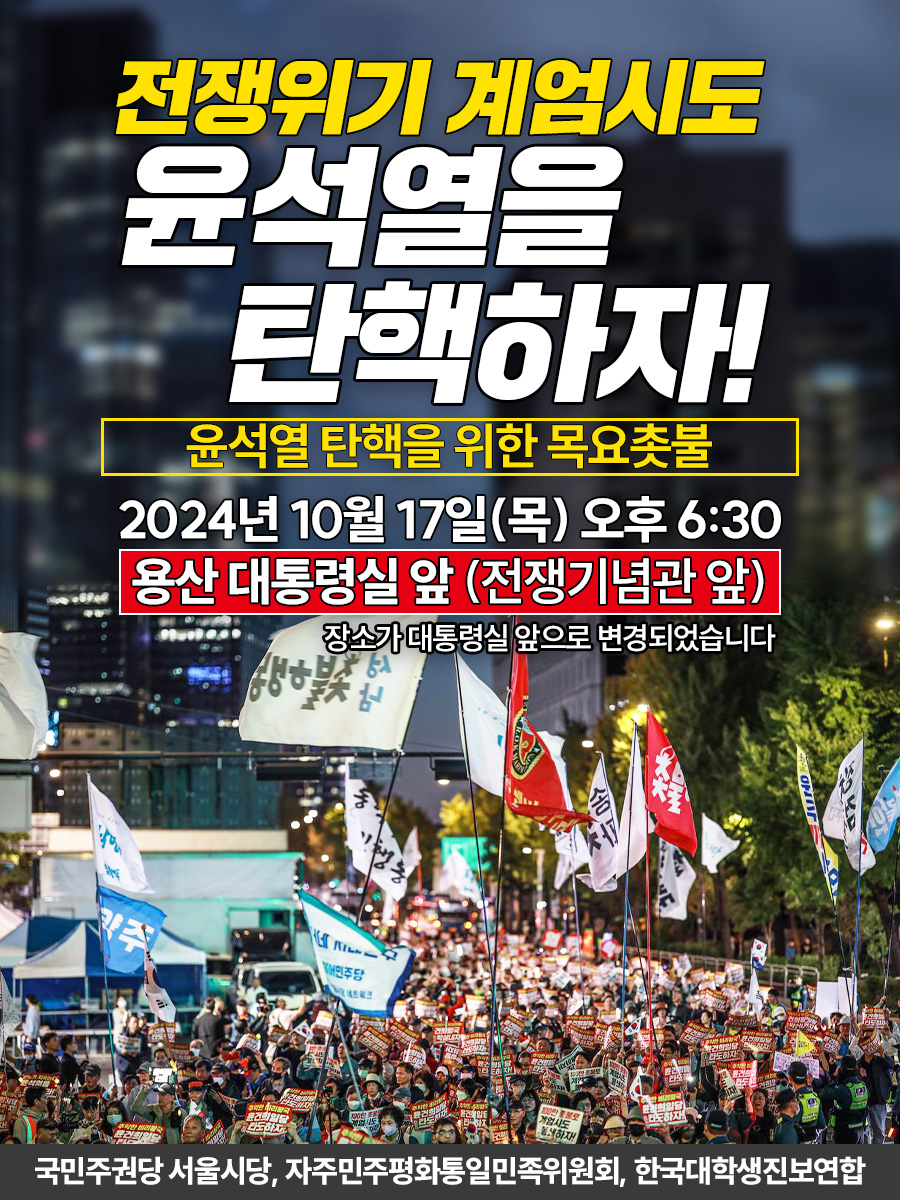 🚨전쟁위기 계엄시도 윤석열을 탄핵하자!