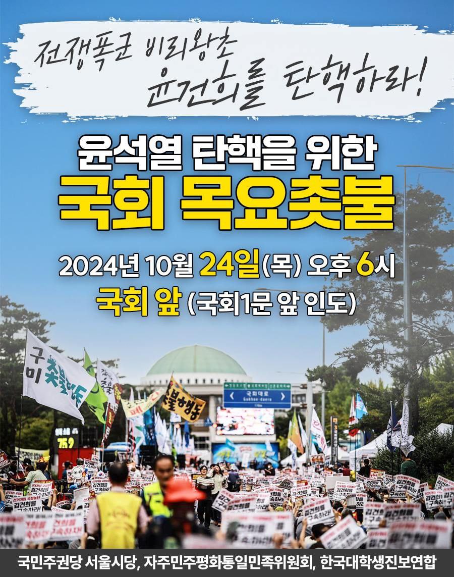 2024년 10월 24일 (목) 오후 6:00, 국회 앞 (국회1문 앞 인도)
