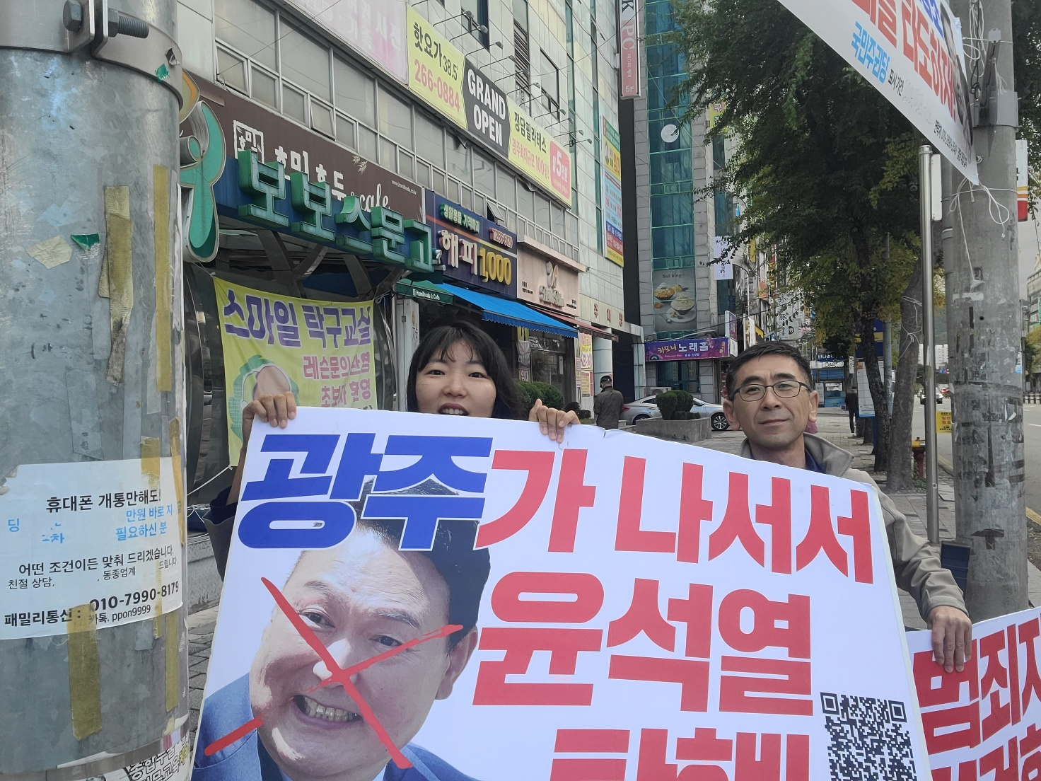 오늘도 뜨거운 탄핵 민심을 느낍니다. '빵빵빵 빵빵' 신명나는 경적 응원도 받고 많은 분이 관심 가져주셨습니다. 국민주권당이 11월 20일, 광주 북구 탄핵촛불을 준비하고 있습니다. 지나가며 응원 건네주는 분들께 북구 탄핵 촛불도 홍보 드렸어요. 윤석열 탄핵과 김건희 구속을 바라는 북구 주민들께서 20일에 많이 모이면 좋겠습니다.
