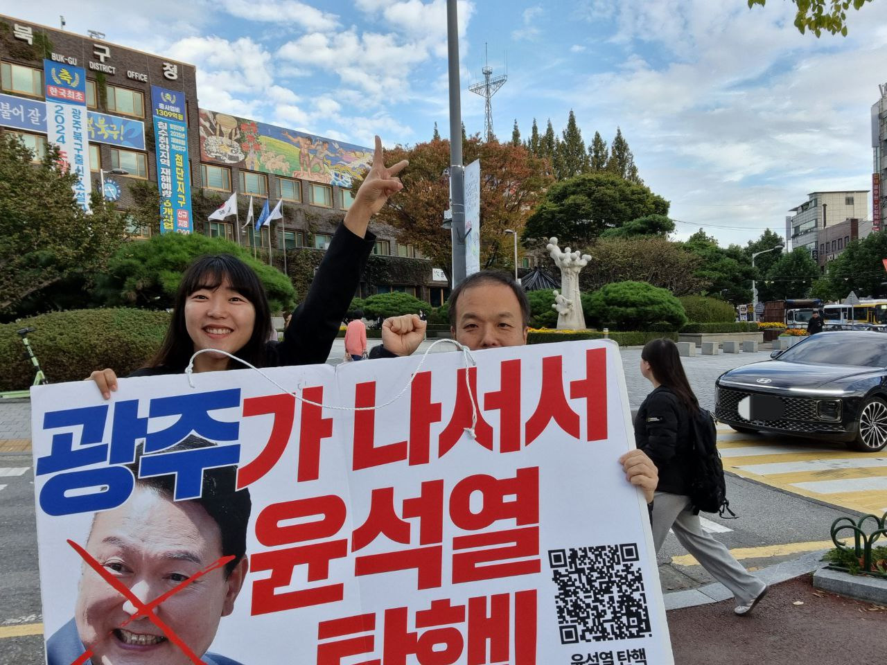 오늘도 현수막을 보고 탄핵 촛불에 참가하고 싶으시다는 전화가 왔습니다. 이렇게 소중한 한 분, 한 분이 모여 윤석열을 끌어내릴 것이라고 확신합니다. 동학부터 항일 독립 운동, 4.3항쟁, 4.19혁명, 5.18민중항쟁, 6.10민주항쟁, 그리고 박근혜 탄핵 촛불과 지금의 촛불까지. 역사의 거대한 물줄기는 언제나 정방향으로 힘차게 흘러갑니다. 이 땅의 주인인 우리 국민이 언제나 성실하고 헌신적으로 역사의 진보를 일구기 때문입니다. 국민이 진정 주인되는 새날을 더욱 빠르게 앞당기기 위해서 국민주권당은 전진, 또 전진하겠습니다.